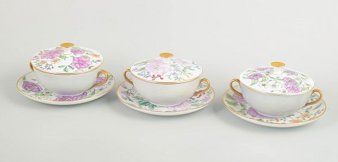 Meissen Blue Orchid, set of three soup plates.