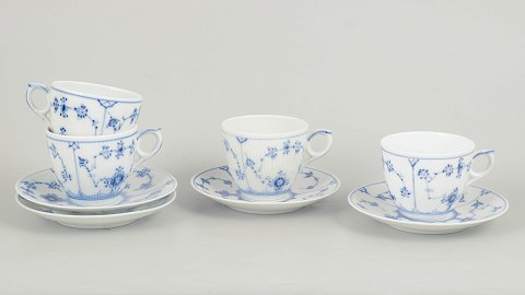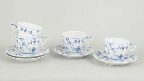 Blue Flower Plain Danish porcelain. Set of 4 high-handled cups No 8193 + 1 saucer