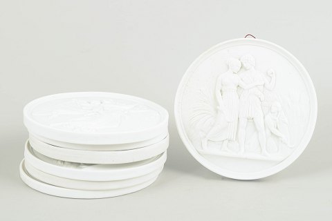 Bing & Grøndahl, set of seven biscuit wall plaques after Thorvaldsen.