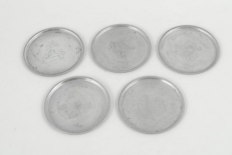 Just Andersen, set of five coasters in pewter.