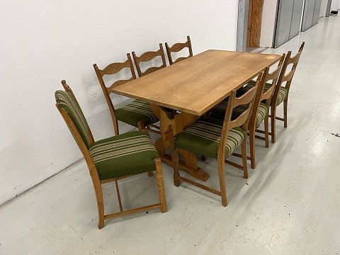 Klassisk spisebordssæt i massiv eg af Henry/Henning Kjærnulf