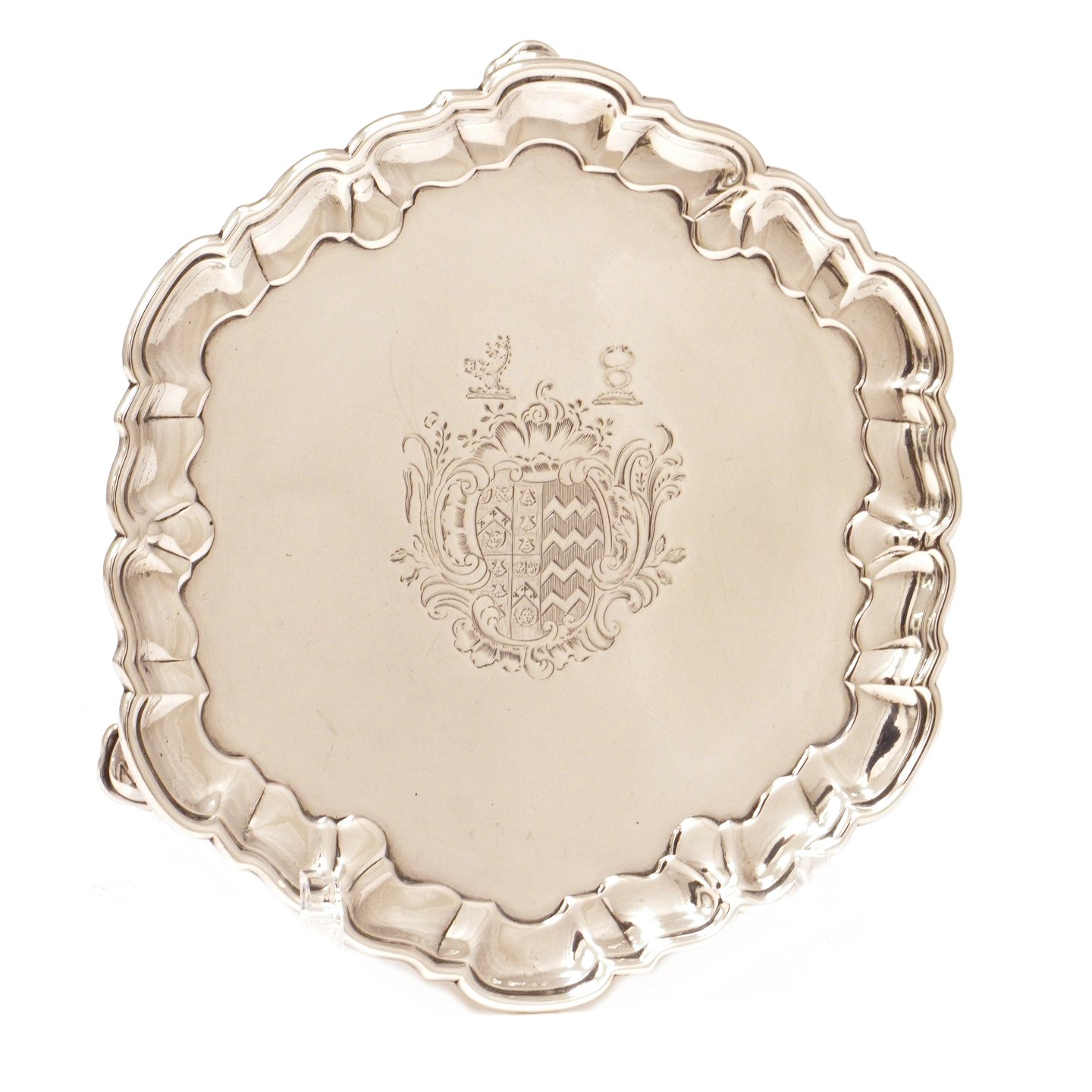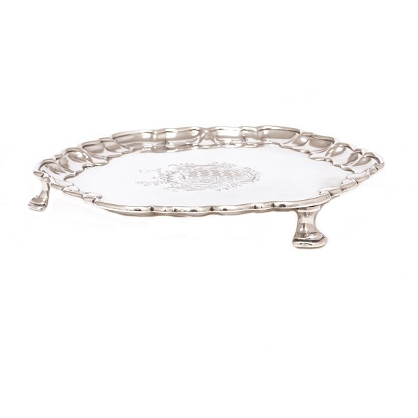 George II silver salver with coat of arms London 1736-37 H: 2cm. D: 18cm. W: 372gr Item number: 495