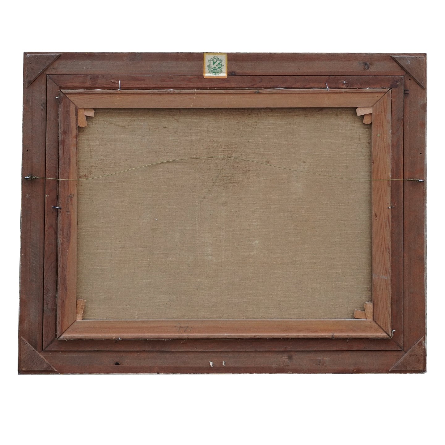 Ole Ring, 1902-72, oil on canvas. View from a village in Sjælland. Signed Ole Ring 1963. Visible size: 28x42cm. With frame: 43x57cm