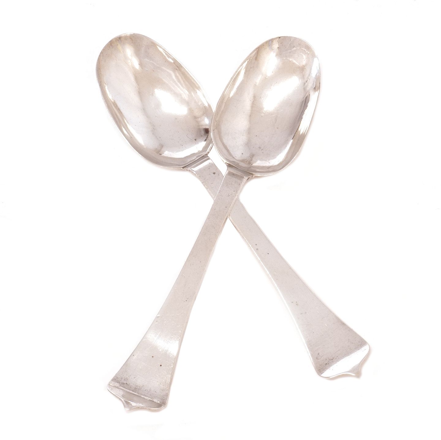 Pair of Baroque silver spoons by Bendix Aagesen Lund, Copenhagen, 1719.