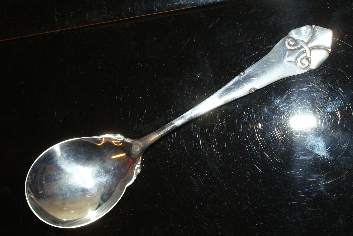 Compote spoon French Lily silver Length 18 cm. Beautiful and well maintained The cutlery is polleret and packed in a bag.