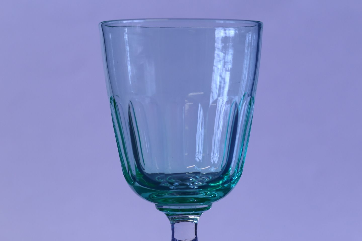 White wine glass uranium green, Christian d.8 (Chr.d.8) glass. Height: 12.3 cm. Diameter: 6 cm. Nice and well-maintained condition.