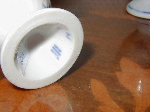 Royal Copenhagen Blue Fluted Plain, antique egg cups marked with only three blue wavy lines. Factory first. We have four in stock.