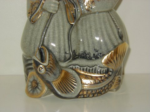Rare, Large Green Crackled Glaze Royal Copenhagen Figurine with a typical Georg Thylstrup design. Decoration number 1605, factory first, measures 22 by 15 cm.
