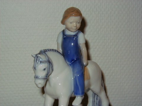 Rare Royal Copenhagen Figurine, Boy on rocking hor