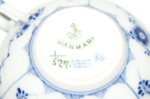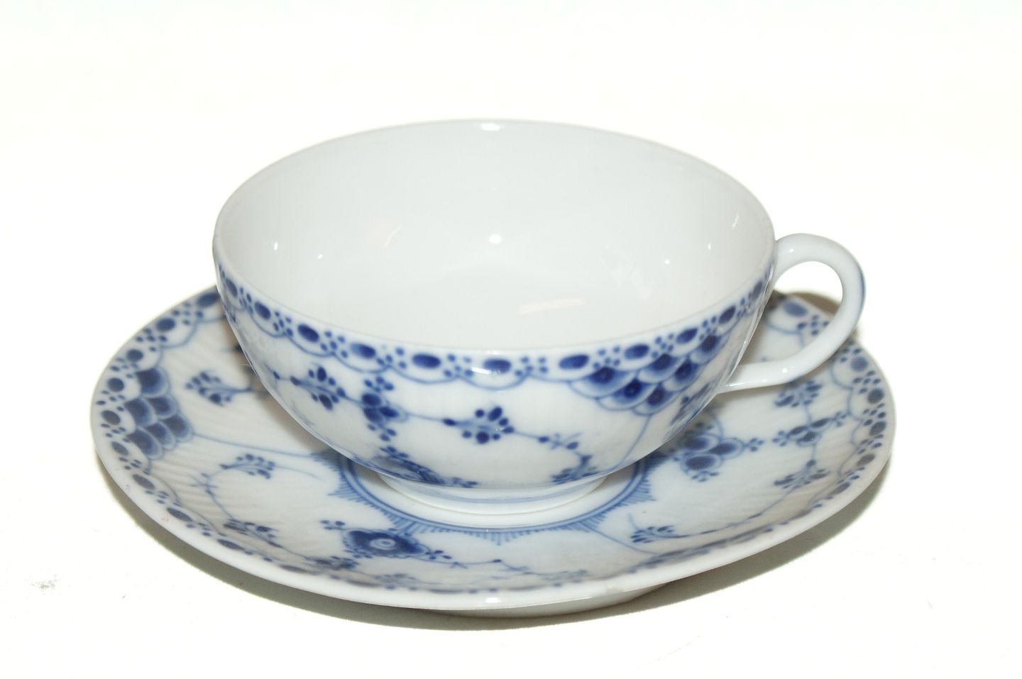 Royal Copenhagen Blue Fluted Half Lace Cup and Saucer