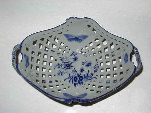 Royal Copenhagen Blue Fluted Full Lace, Rare and Large Fruit Bowl in Rokoko Shape decorated with butterflies