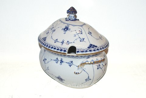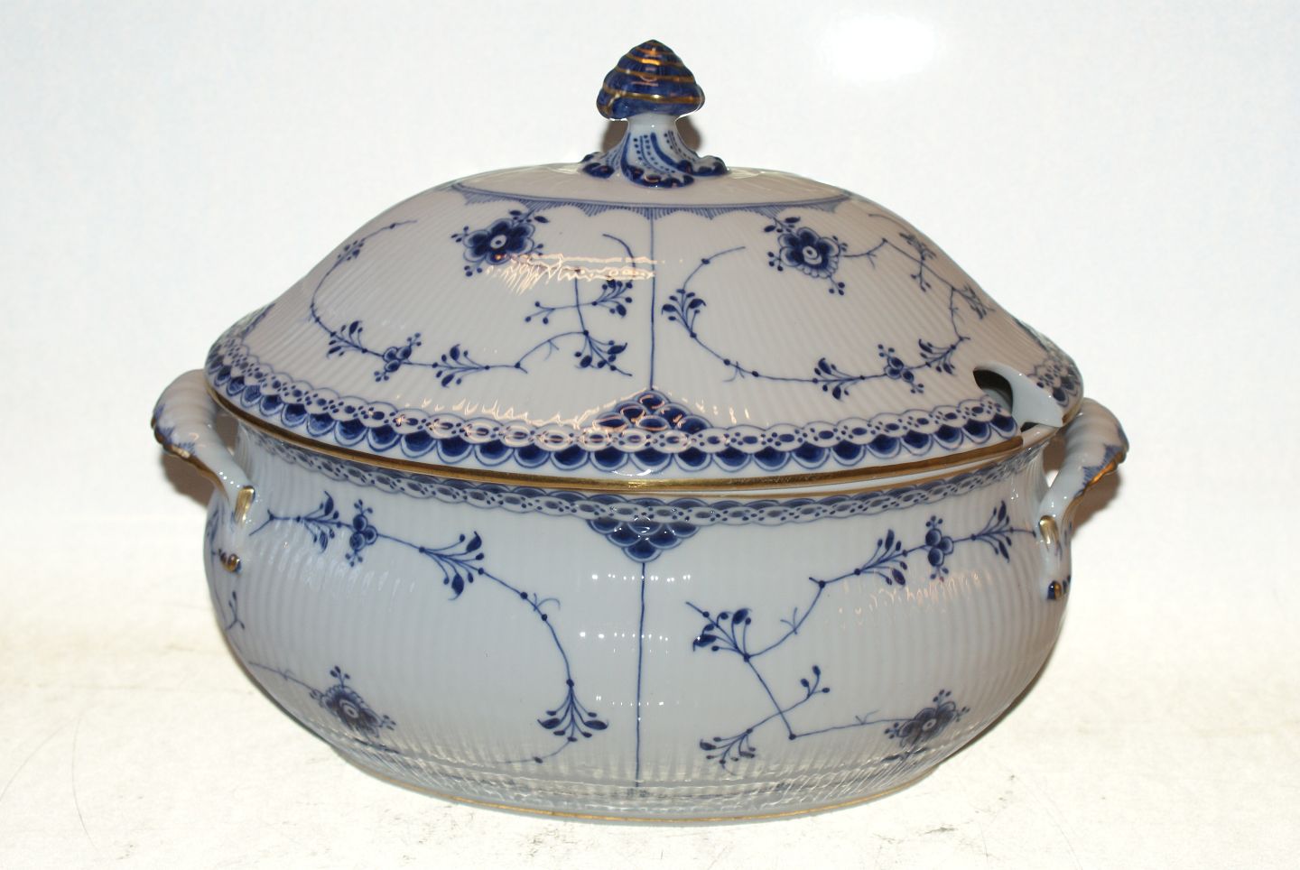 Rare Royal Copenhagen Blue Fluted Half Lace with Gold Edge, Large tureen