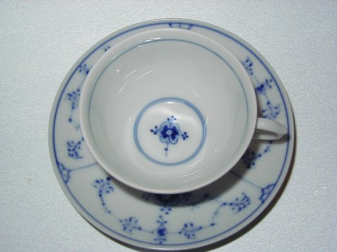 Royal Copenhagen Blue Fluted Plain, Teacup and saucer decorated with a flower inside Decoration number 1 / 69 Cup diameter is 10.5 cm. Perfect condition.