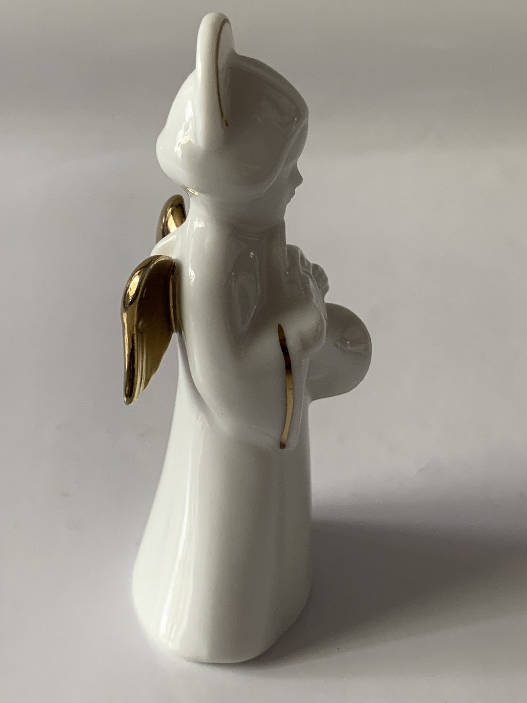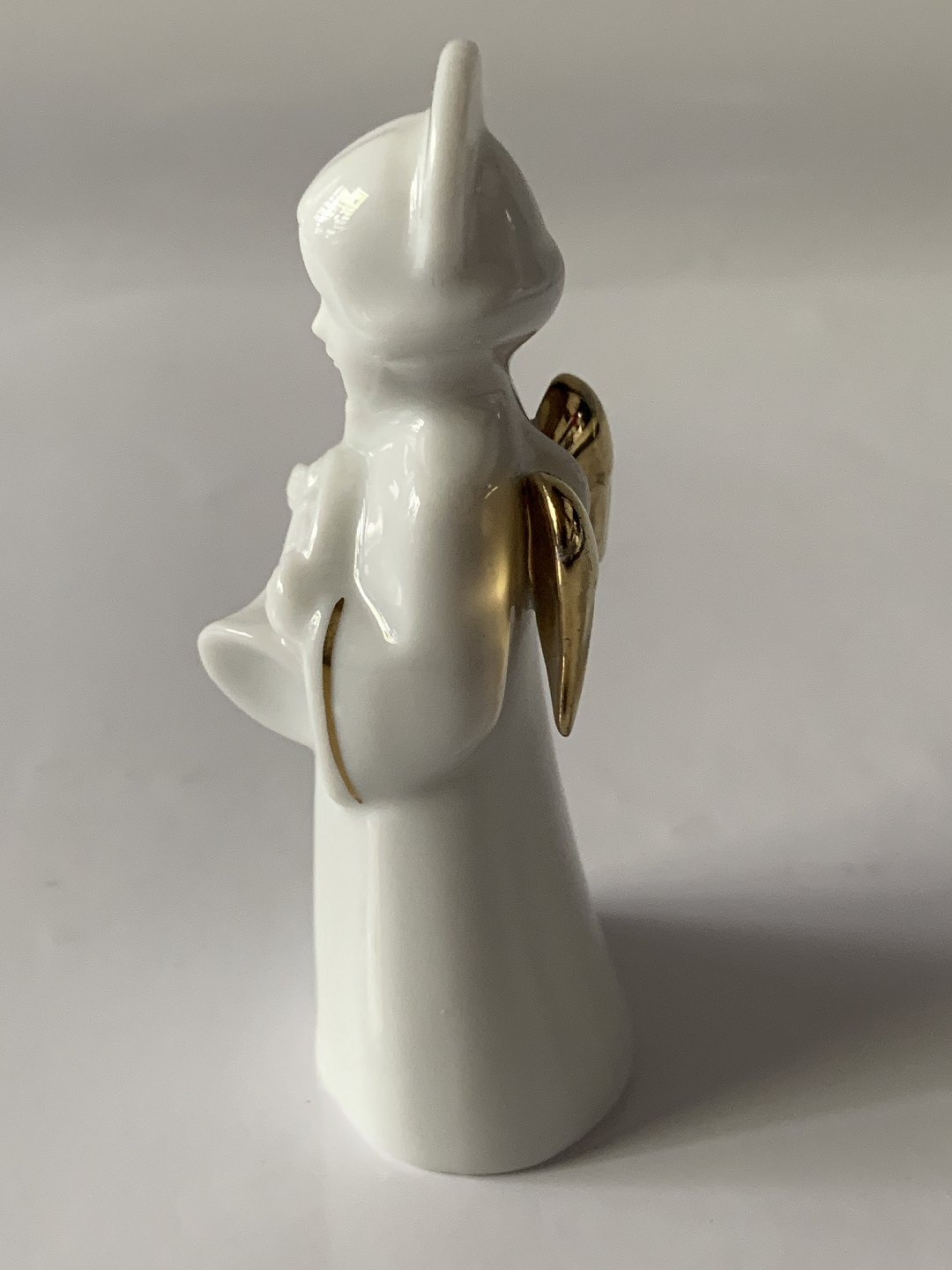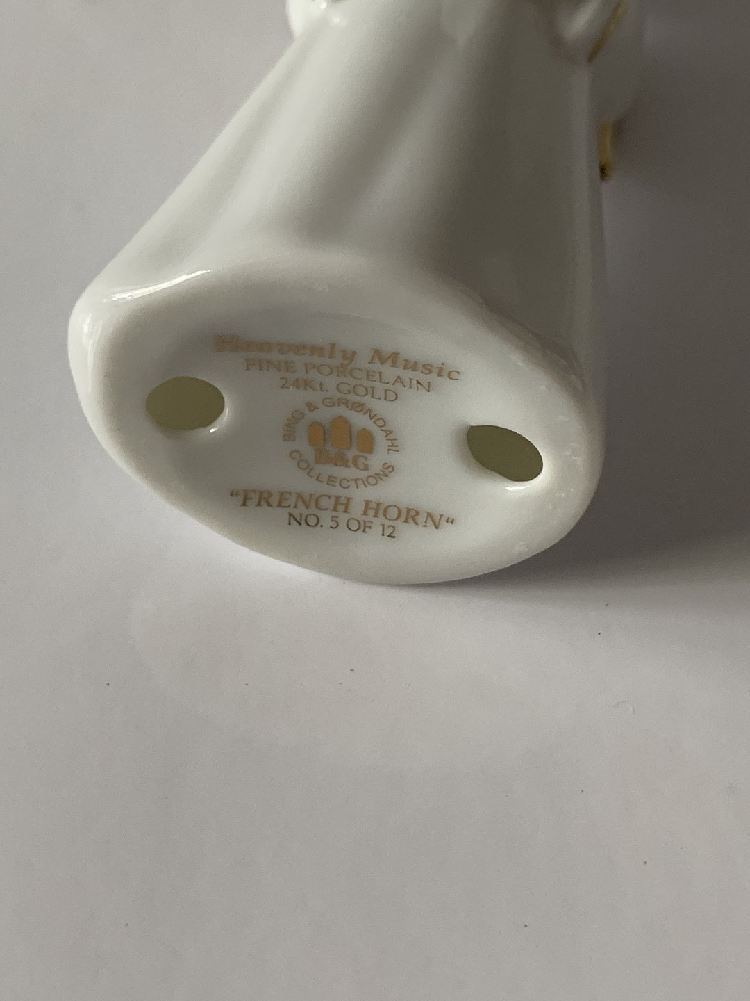 Bing & Grondahl. Heavenly Music. French Horn No. 5 of 12. White porcelain angel with gold inlay and gold wings (24 carat). The series is called "Angel with Instruments" and consists of 12 pieces.