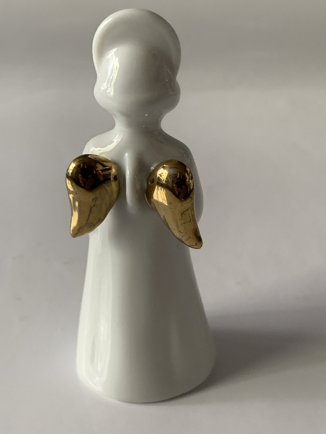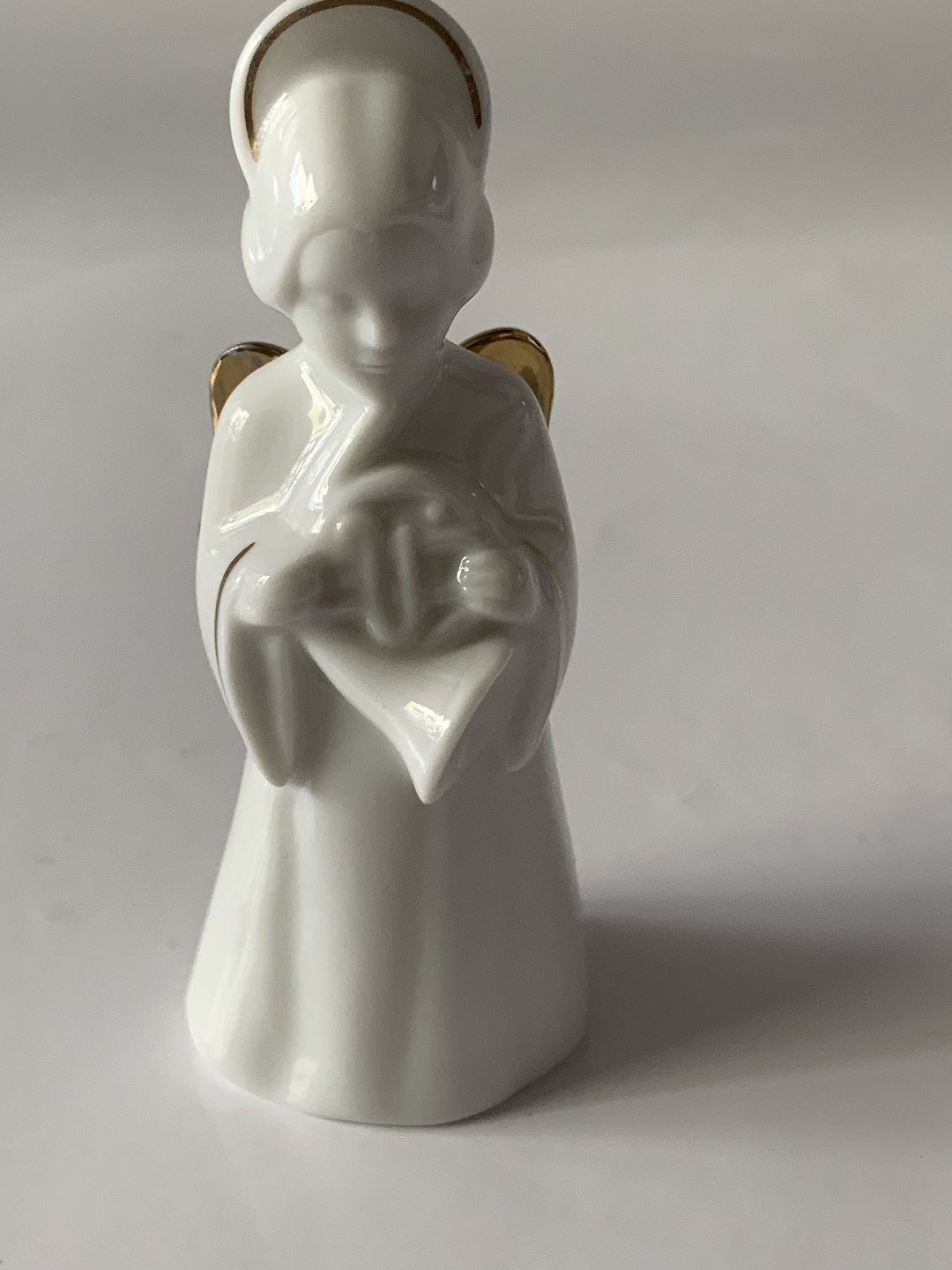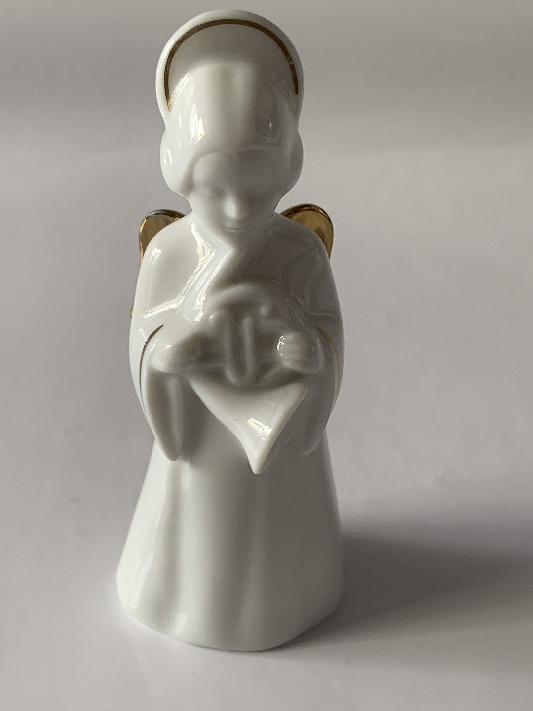 Bing & Grondahl. Heavenly Music. French Horn No. 5 of 12. White porcelain angel with gold inlay and gold wings (24 carat). The series is called "Angel with Instruments" and consists of 12 pieces.