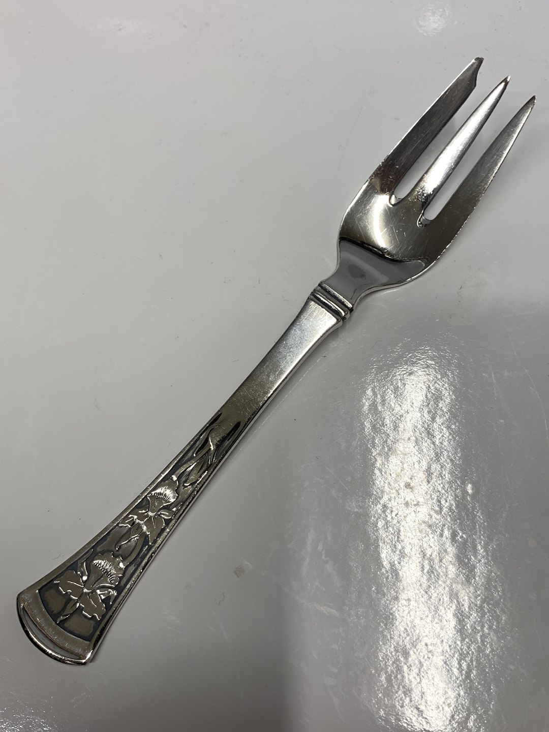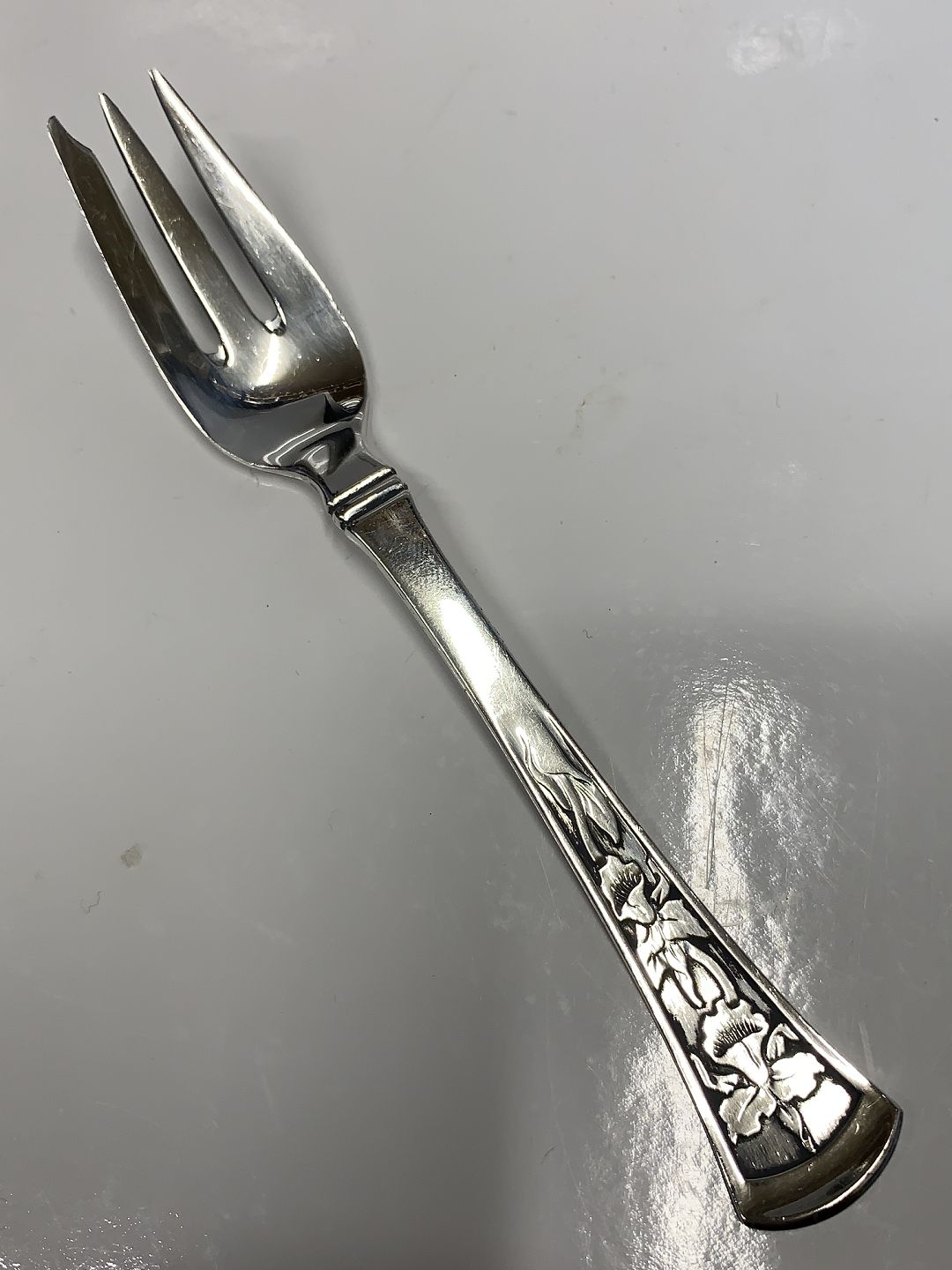 Orchide / Orkide Kagegaffel i Sølv Længde 13,5 cm Fremstillet hos Horsens Sølvsmedie, Orkide sølvbestik 830s Pæn og pudset stand Pakket i pose