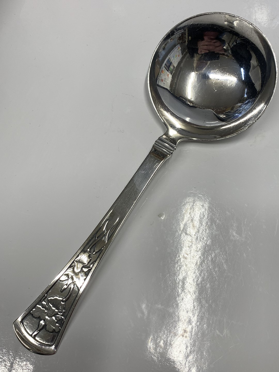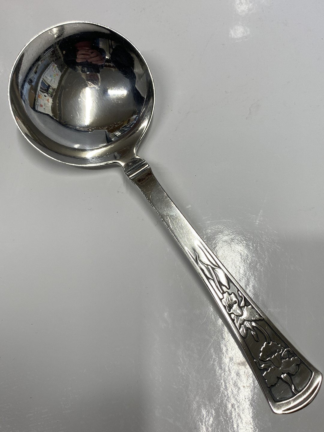 Orchid / Orkide Potato Spoon with Round Handle in Silver Length 19.2 cm Made at Horsens Sølvsmedie, Orkide silver cutlery 830s Nice and polished condition Packed in bag