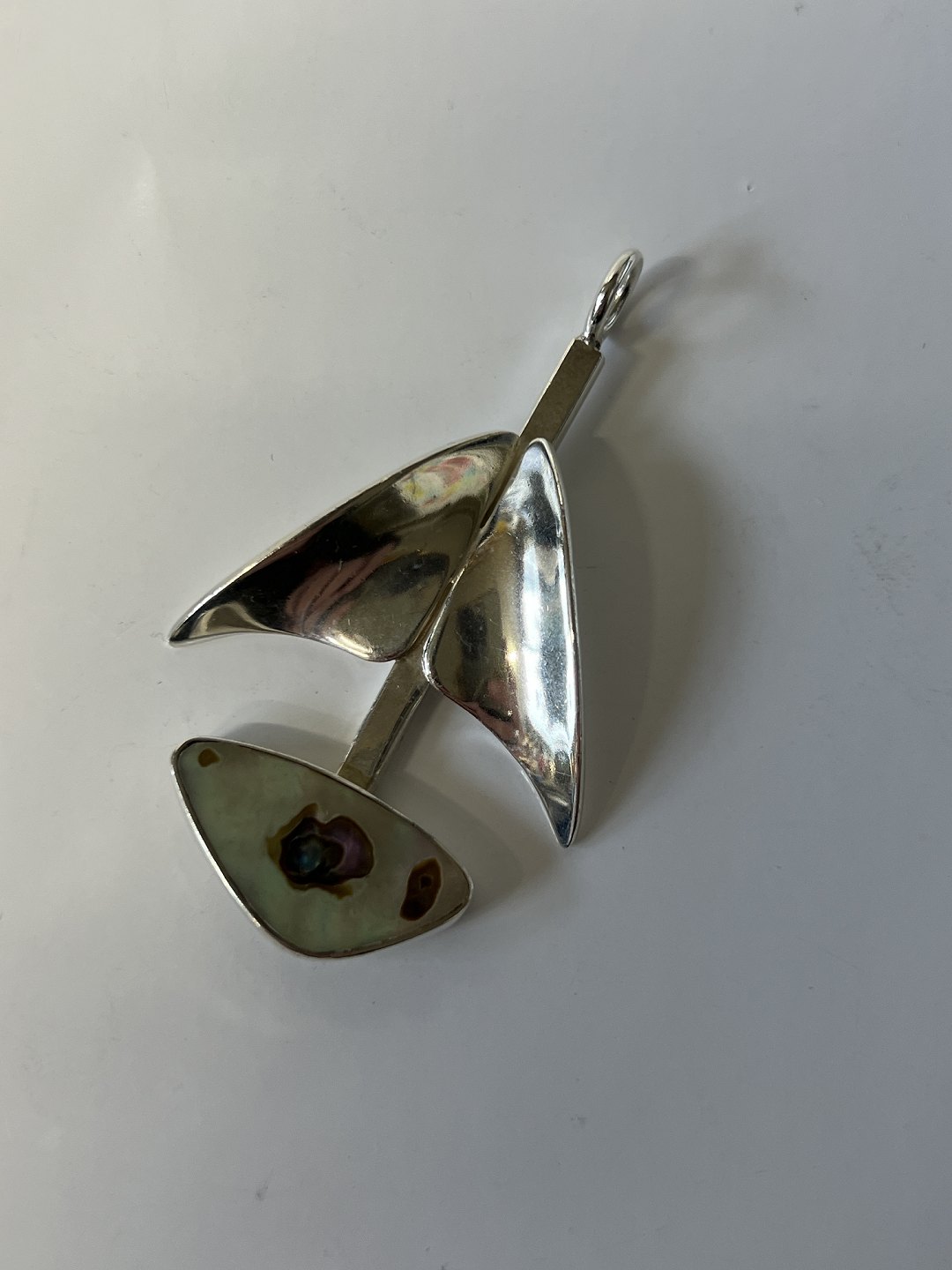 Sterling Silver Abalone Pendant Length 6 cm. Width 3.5 cm. Stamped Brdr. Bj sterling. Perfect condition