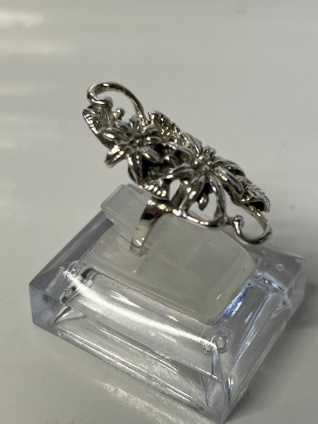 Ladies Ring with Flowers in Sterling Silver