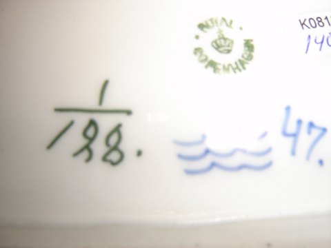 Royal Copenhagen Blue Fluted Plain, Writing set with on house before 1923 Decoration number 1/128 on tray Measures 22 by 15 cm. Lid to the house are with broken fragment
