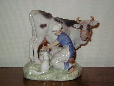 Stor Kongelig Figur af Malkepige, ko og kat SOLGT