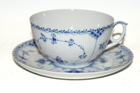 Kongelig Musselmalet Halvblonde, Meget stor Kaffekop med underkop Dek.nr. 1/703 Koppen´s diameter 9,5 cm. Foto: kop nr. 756 ( alm. kaffe kop) i kop nr.703 Prisen er for sættet Perfekt stand.