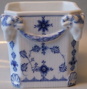 Rare Royal Copenhagen Blue Fluted Plain, Herbal pot hides with ram heads Produced between 1898 and 1923 Dek. 1 / 124 Factory first Height 13.5 cm. Opening 11 x 11.5 cm. Perfect condition