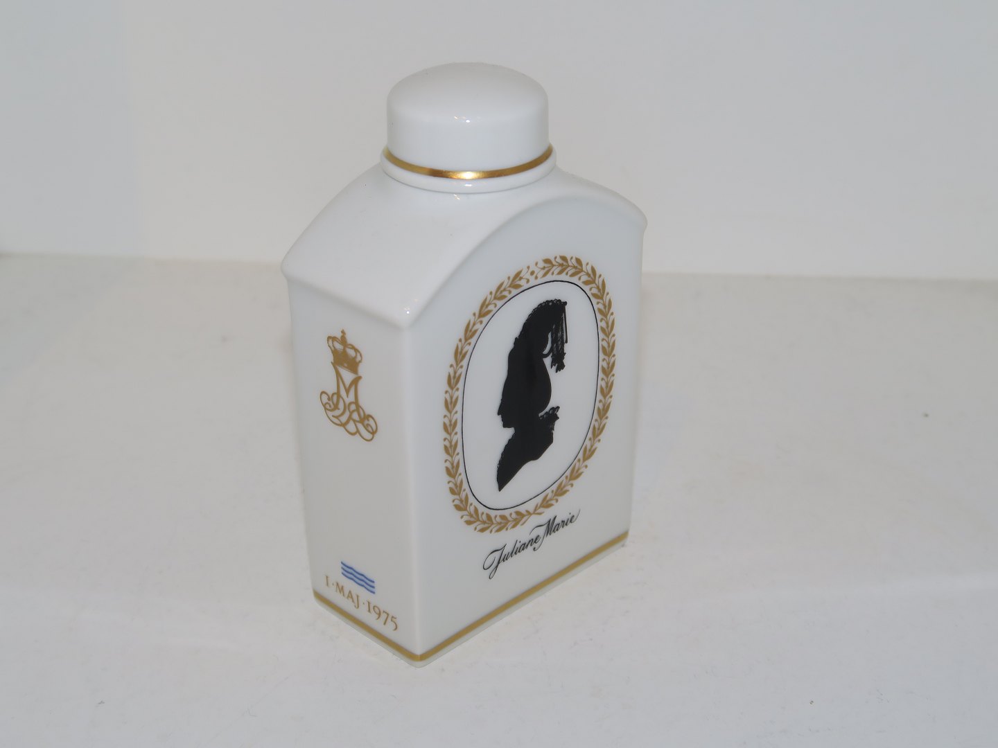 Royal Copenhagen lidded tea caddy - Margrethe and Queen Juliane Marie dated May 1st. 1975. Factory first. Heitght 10.5 cm. Perfect condition.