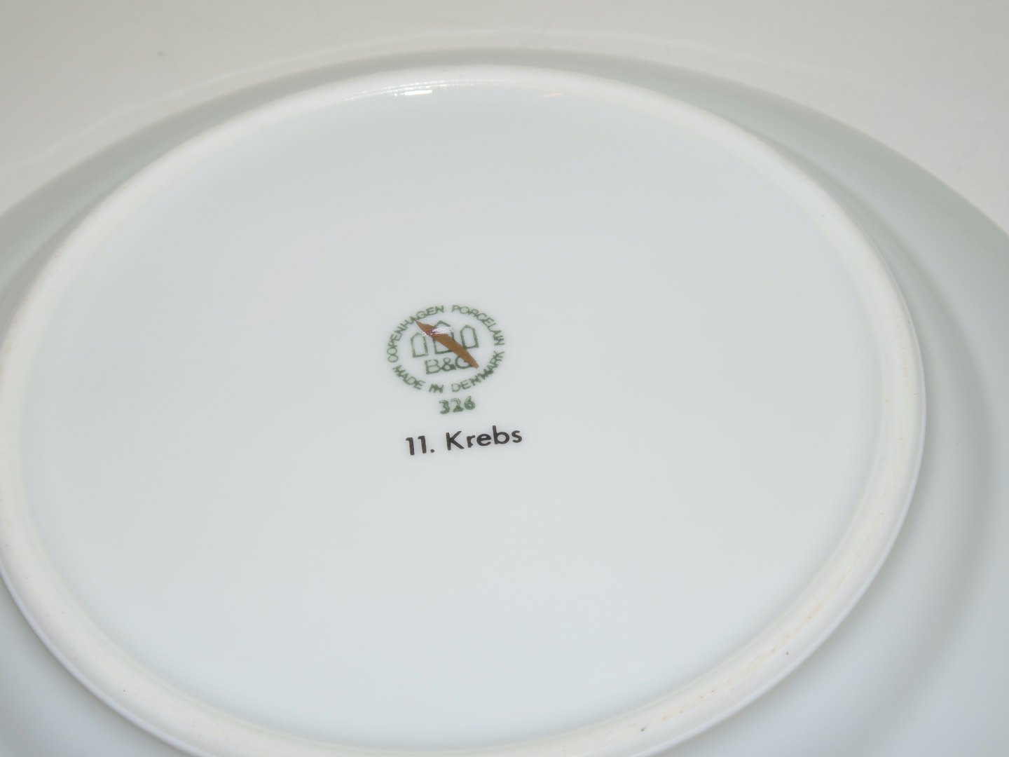 Bing & Grondahl Seagull with gold edge, fish plate number 11: Crayfish (Krebs). Decoration number 26 or newer number 326. Factory first. Diameter 21.5 cm. Perfect condition with no chips, cracks or repairs.