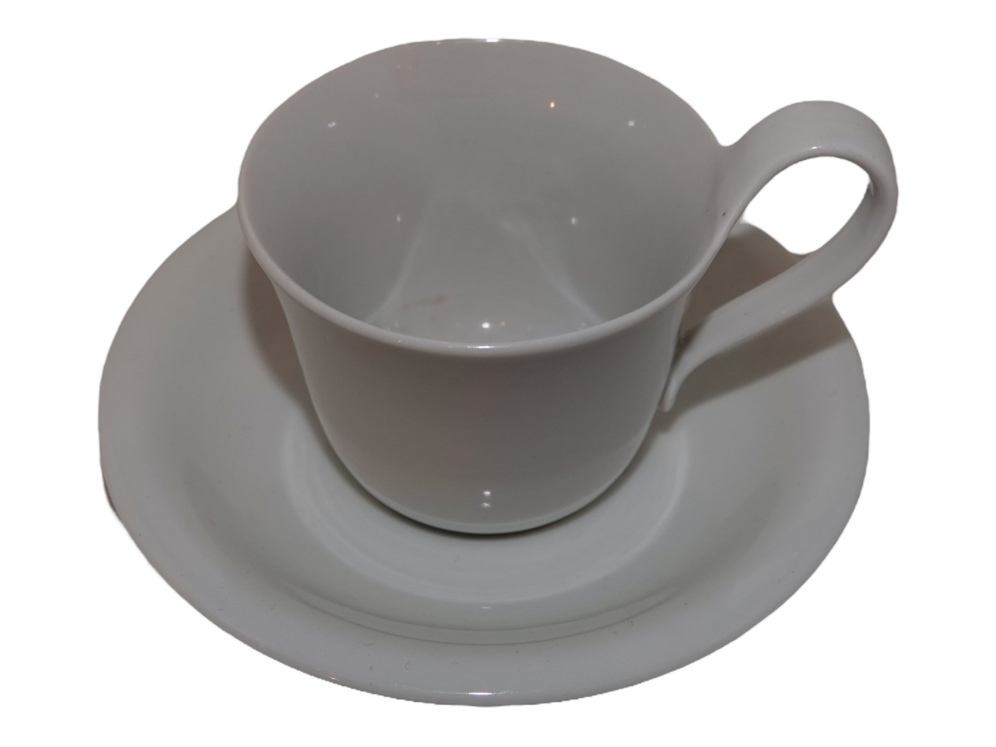 Bing & Grondahl White, largehigh handle cup with matching saucer.