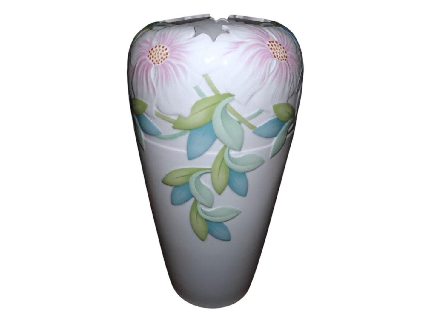 Royal Copenhagen Fleurie, ekstra stor gulvvase med indhak i toppen, så blomsterstilkene står pænt.