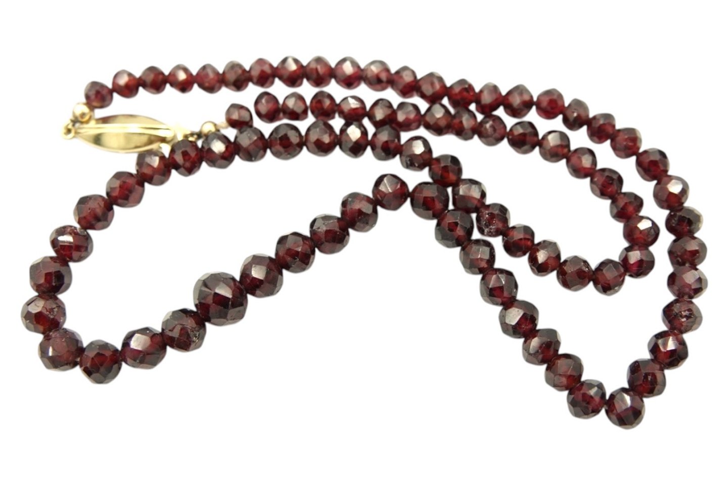 Necklace with grenades and 8 carat gold lock. Hallmarked "FH FH". Length 46.0 cm. Excellent condition.