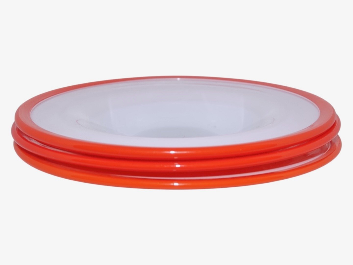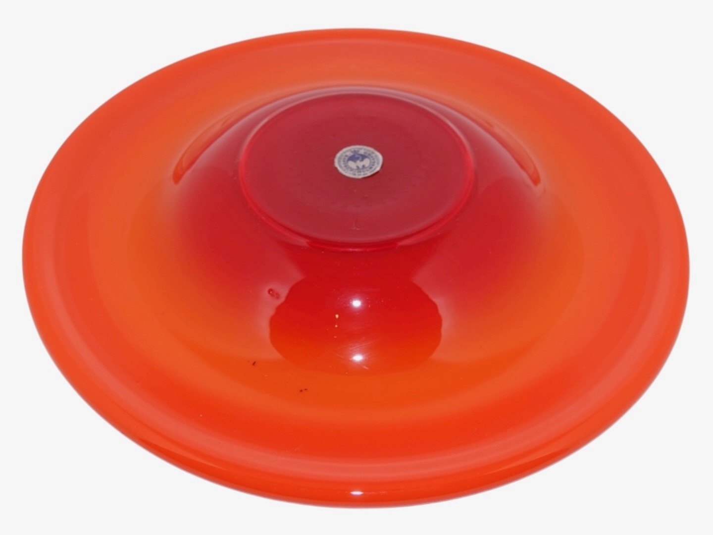 Holmegaard Palet, orange / red dish. Designed by Michael Bang and they were in production from 1969 until 1976. Diameter approximately 23 cm. They vary a little in the size. Perfect condtion with no chips/cracks/repairs.