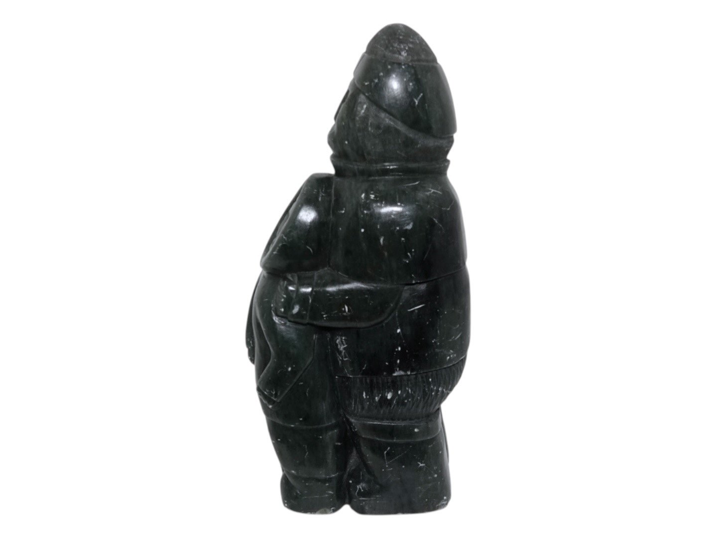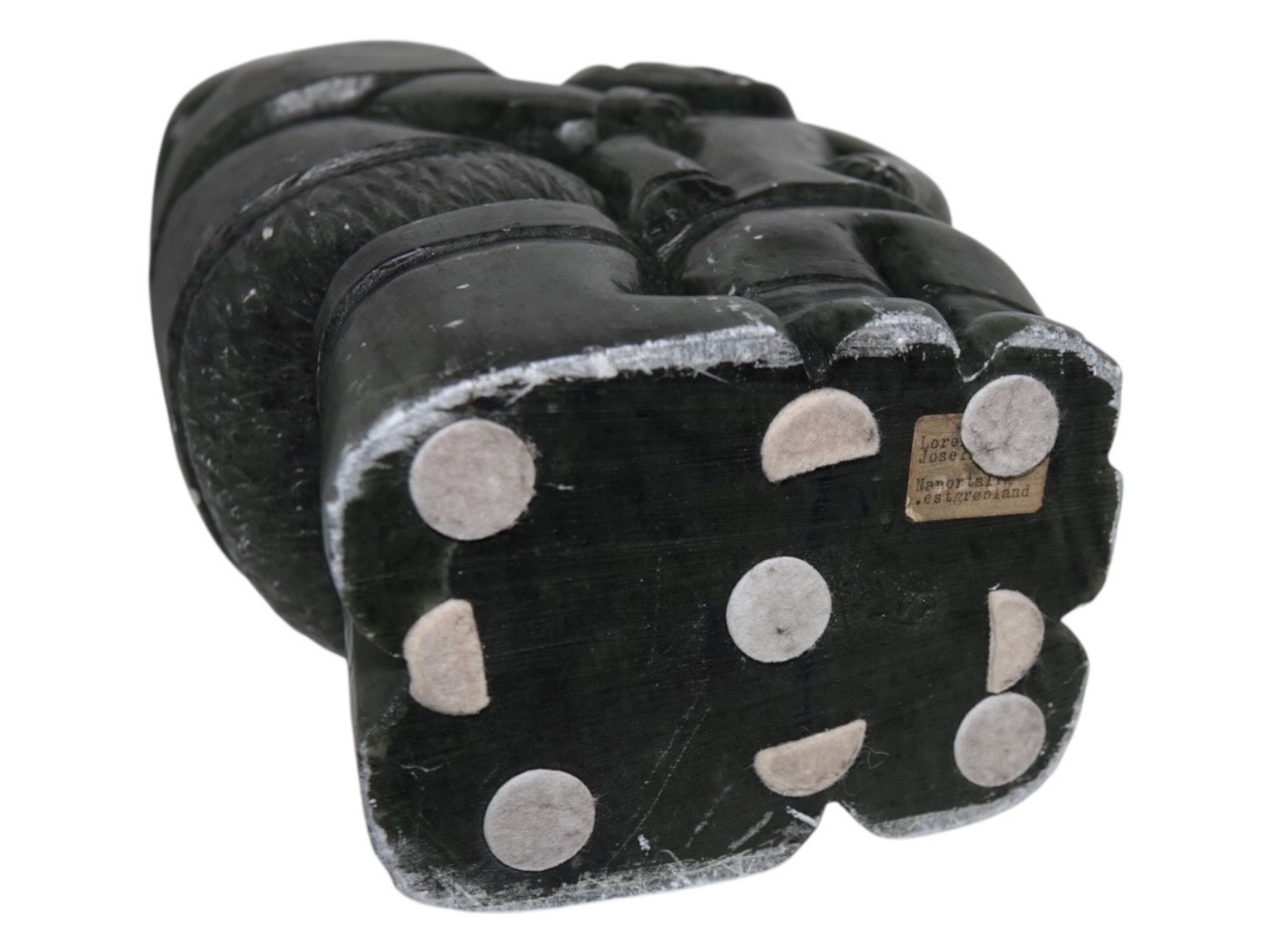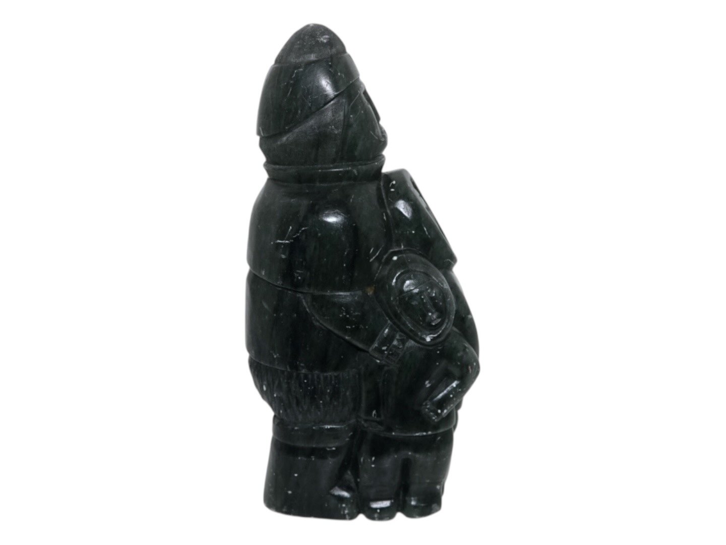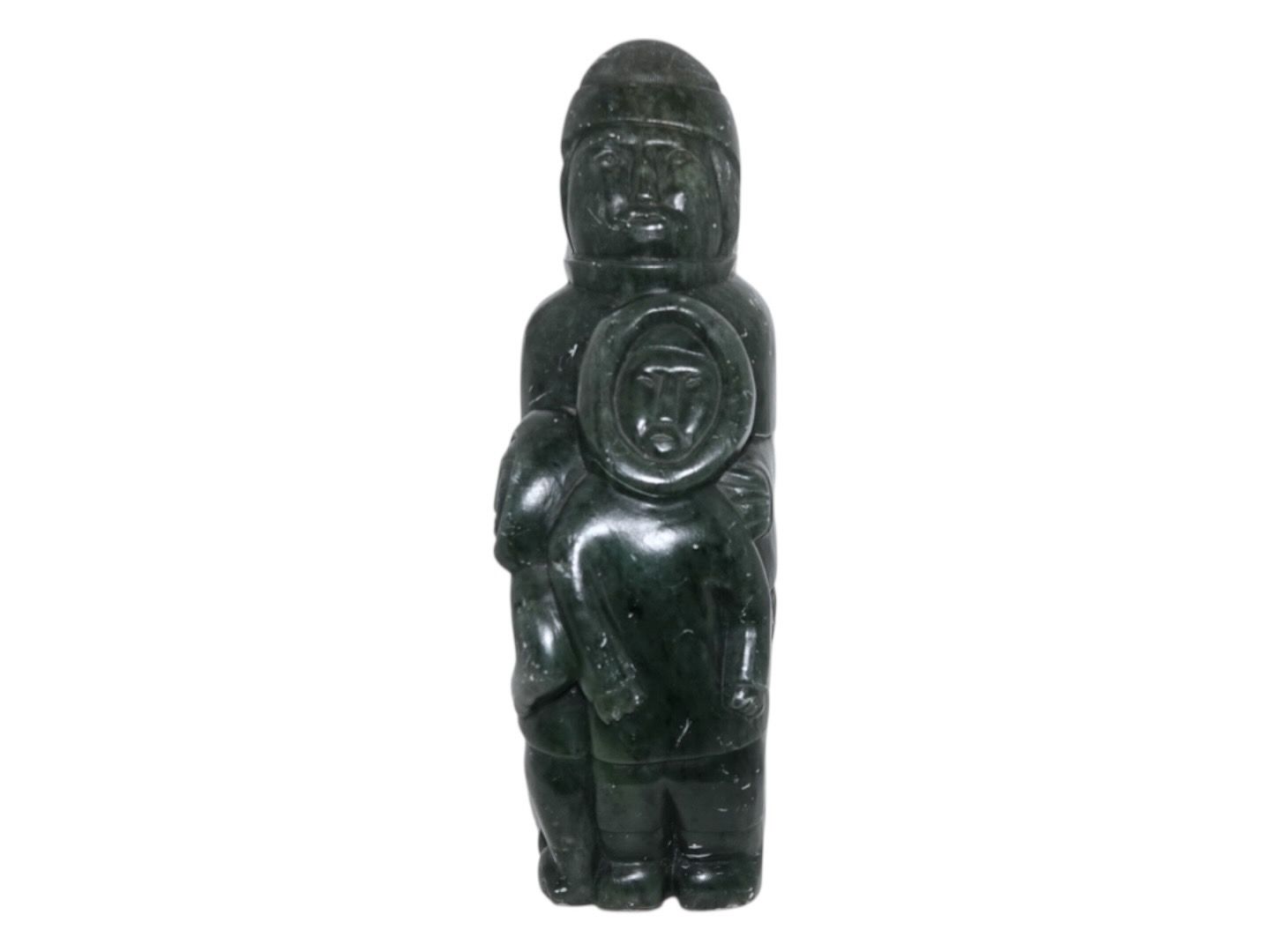 Greenland, large soap stone figurine, man with two children by artist Lorentz Josefsen from 1978.