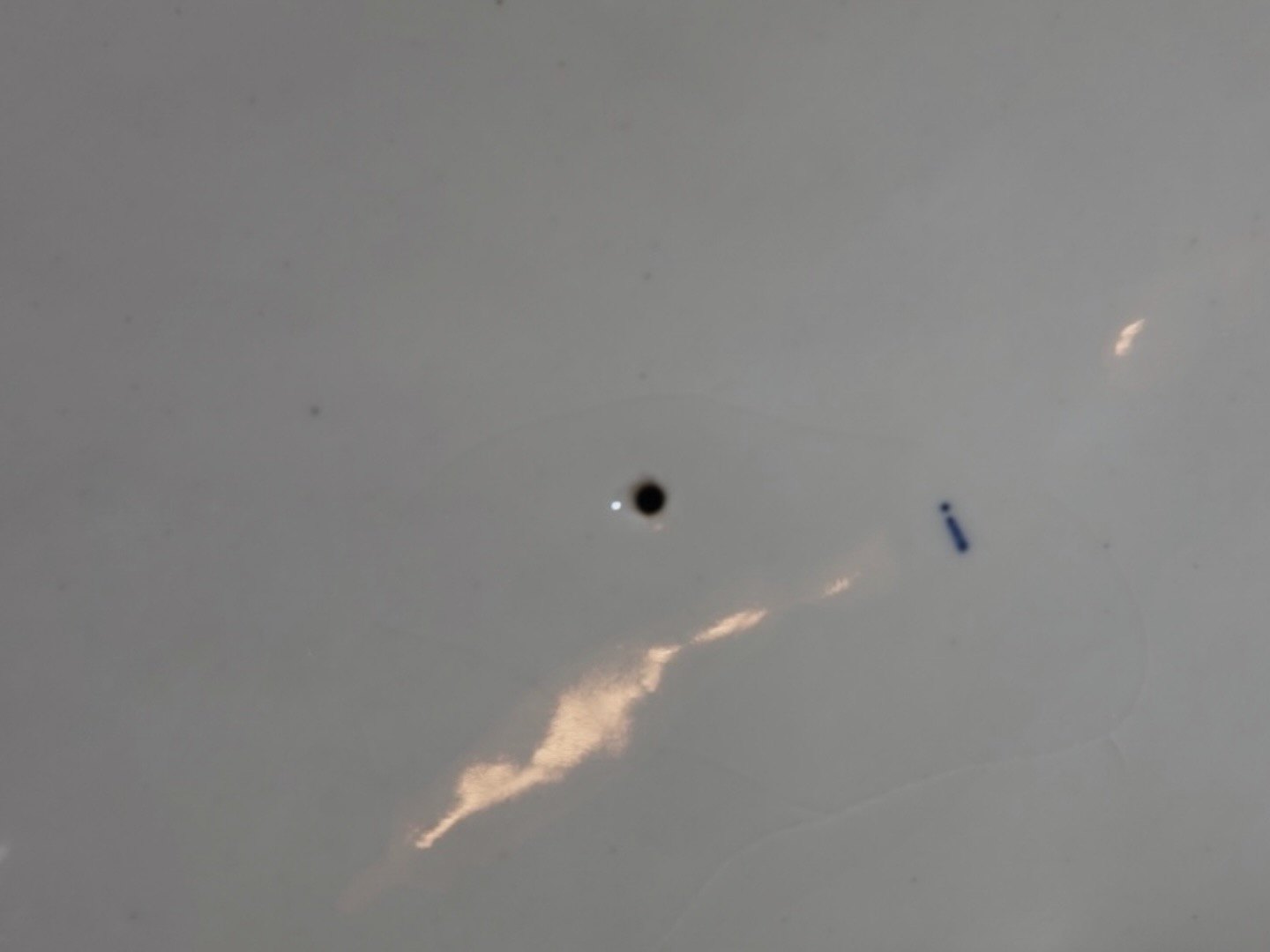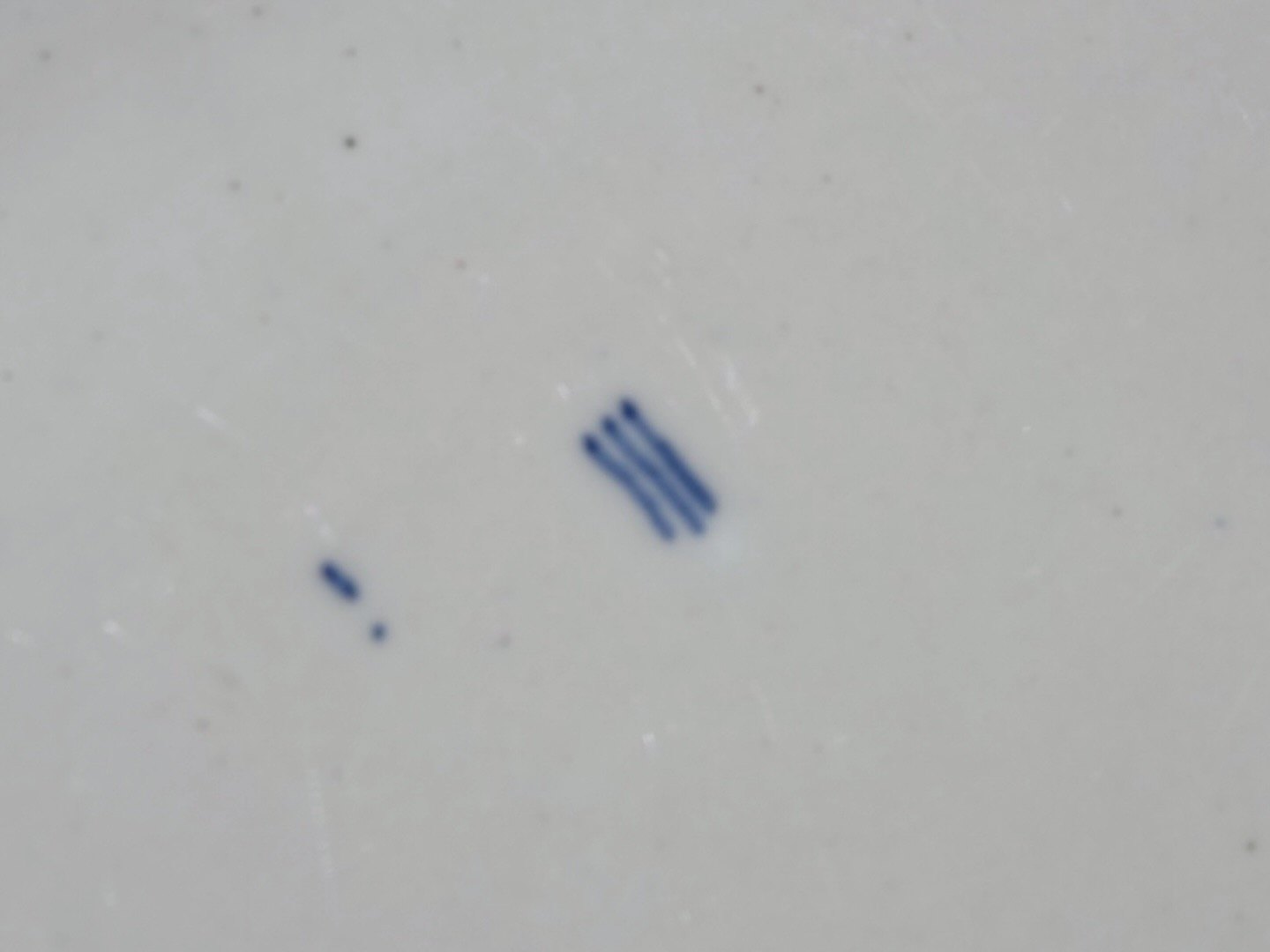 One handle is glued and the lid has a "star" hairline crack at the middle, please see the pictures.