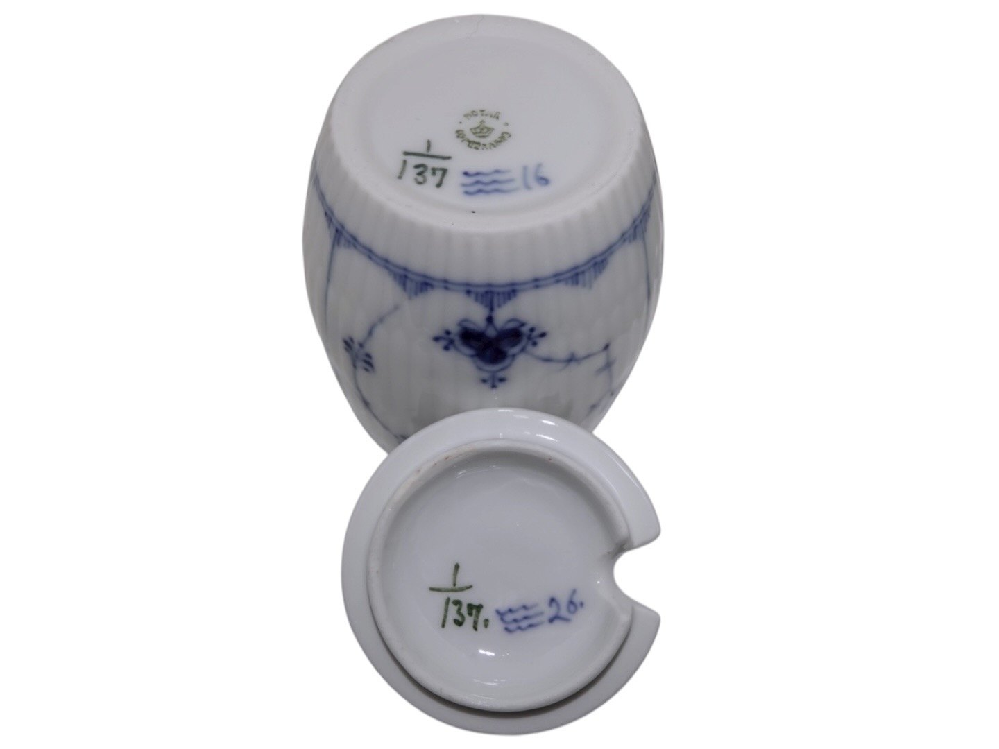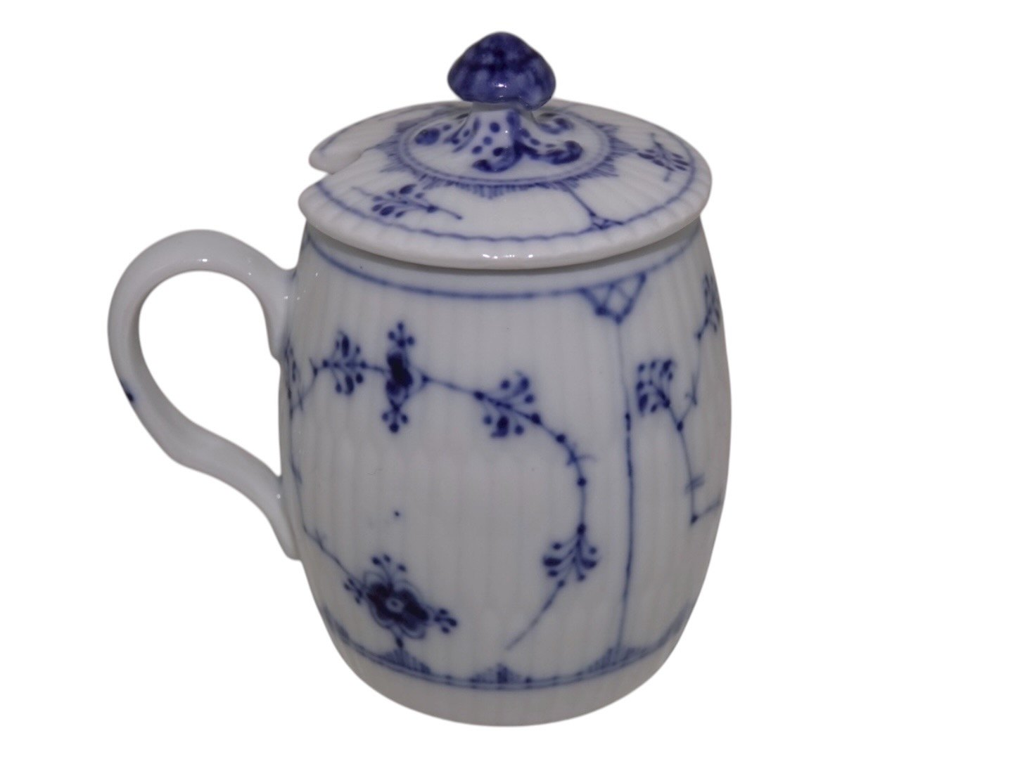 Royal Copenhagen Blue Fluted Plain, lidded mustard jar.