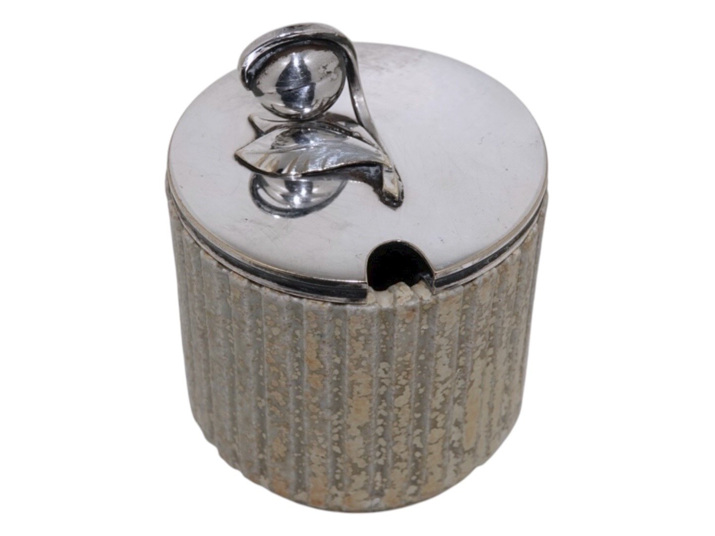 Arne Bang art pottery, marmelade jar with silverplate lid.