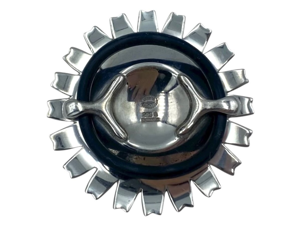 Georg Jensen sterling silver, black Daisy pendant in leather string.