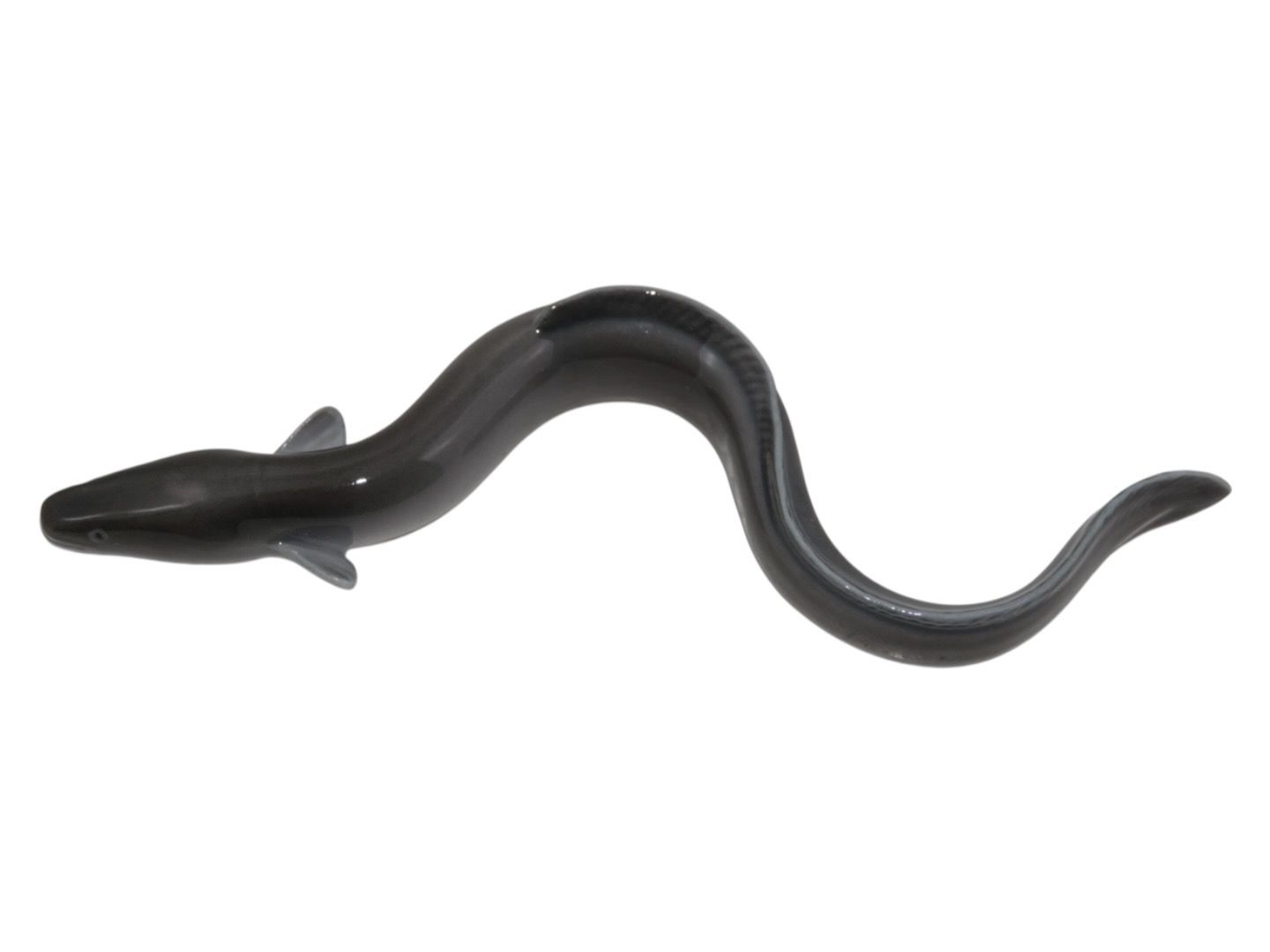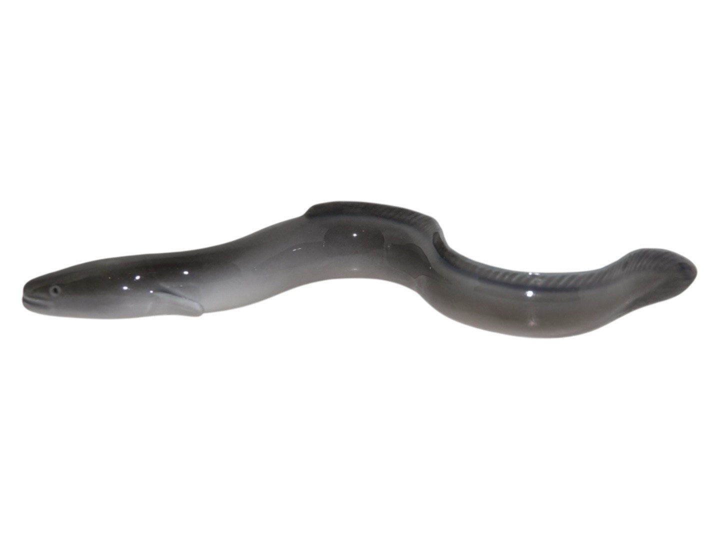 Rare Bing & Grøndahl fish figurine, Eel. Decoration number 2138. Factory first. Length 15.5 cm. Perfect condition with no chips, cracks or repairs.