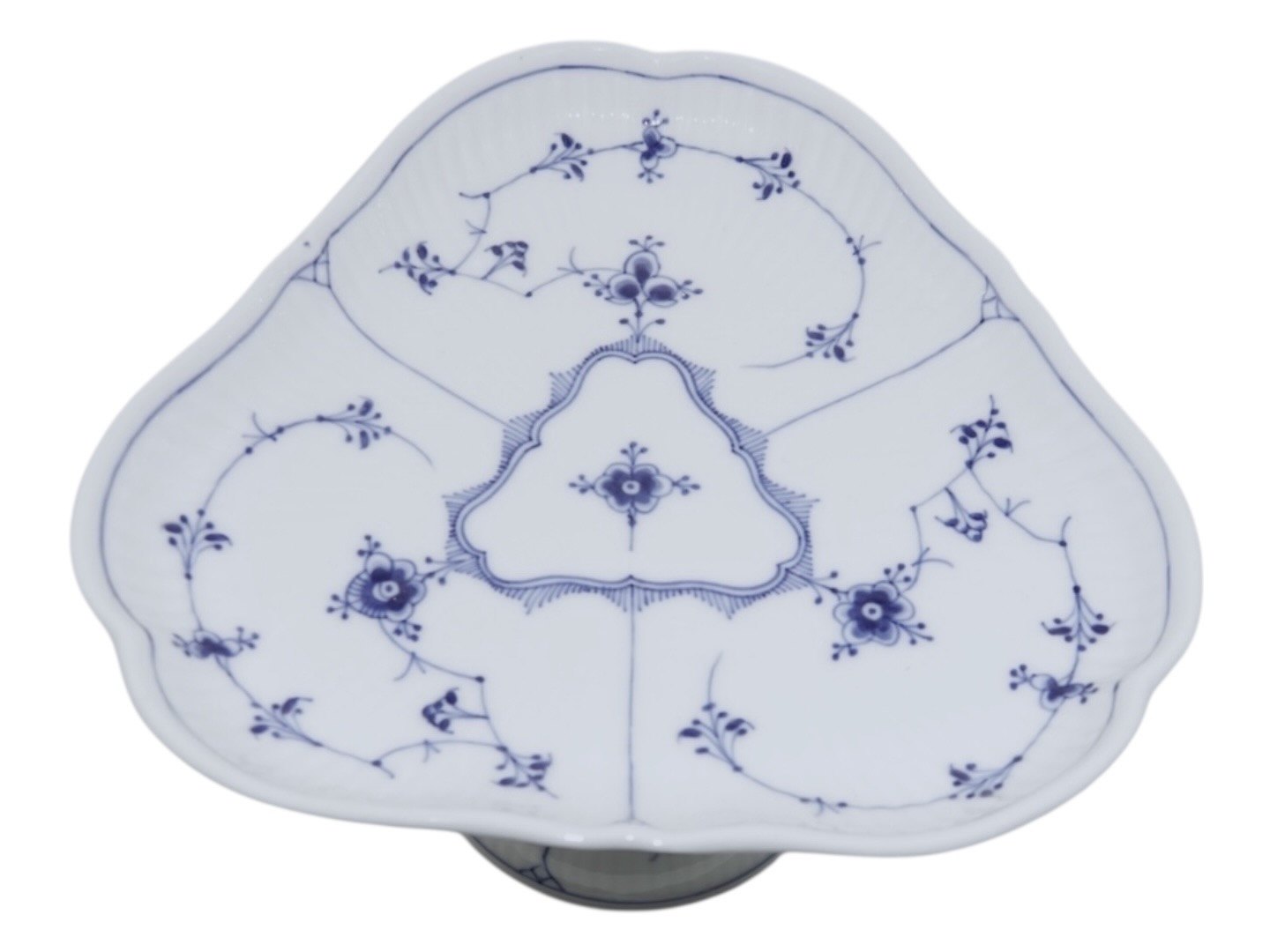 Royal Copenhagen Blue Fluted Plain, rare triangular cake bowl on stand.