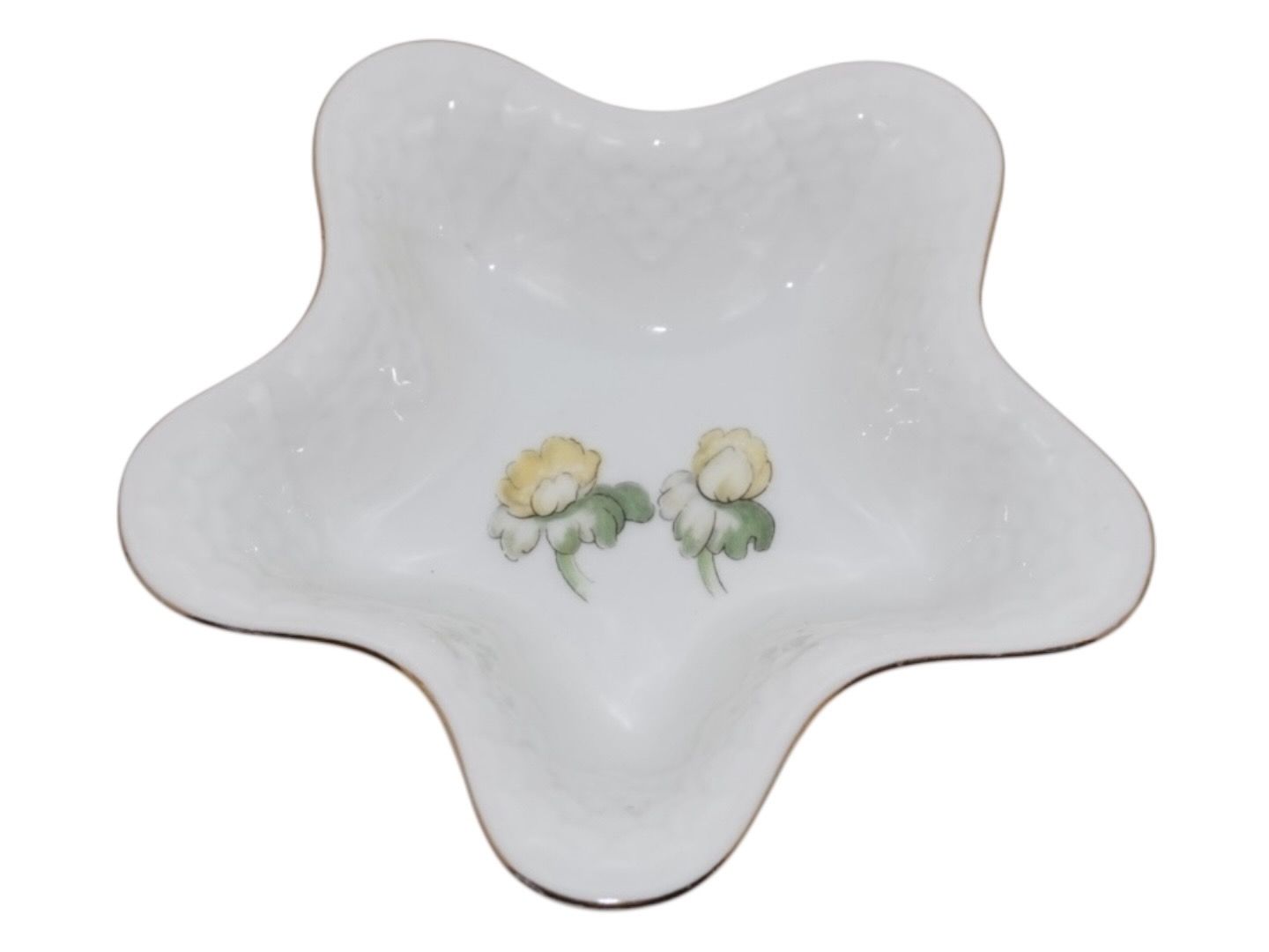 Bing & Grøndahl Erantis, lille skål. Af fabriksmærket kan det udledes, at denne er fra mellem 1952 og 1958. Dekorationsnummer 42A. 1. sortering. Diameter 13 cm. Perfekt stand uden fejl.