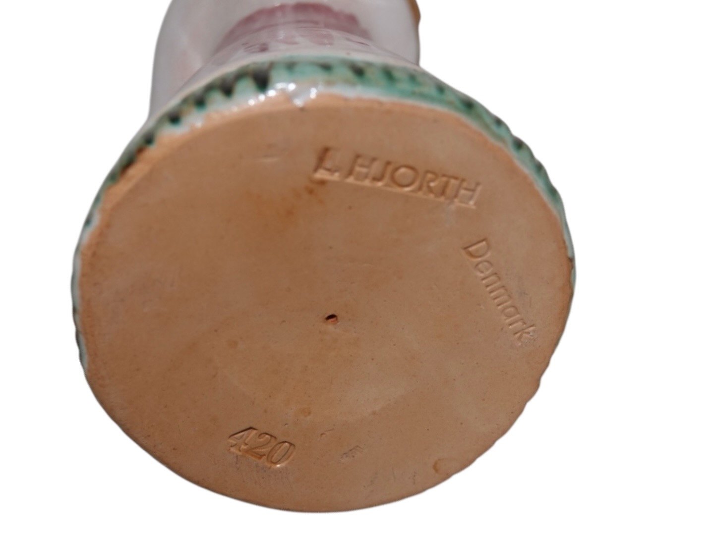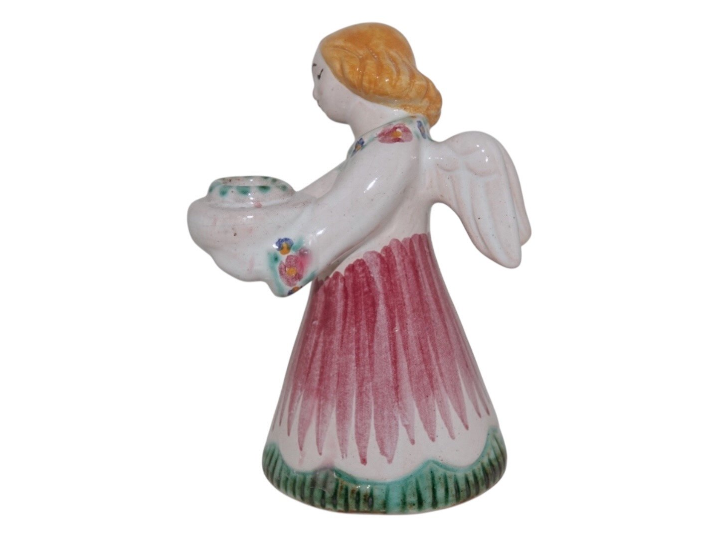 Hjorth art pottery, angel figurine / candle light holder. Red, green and yellow color.