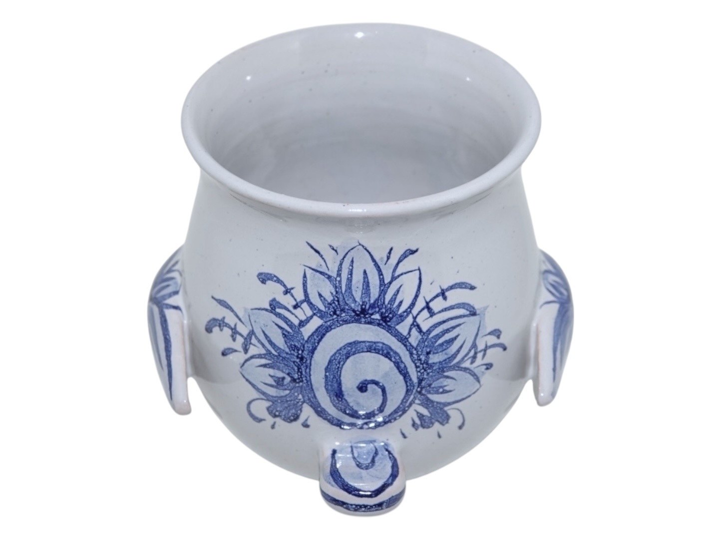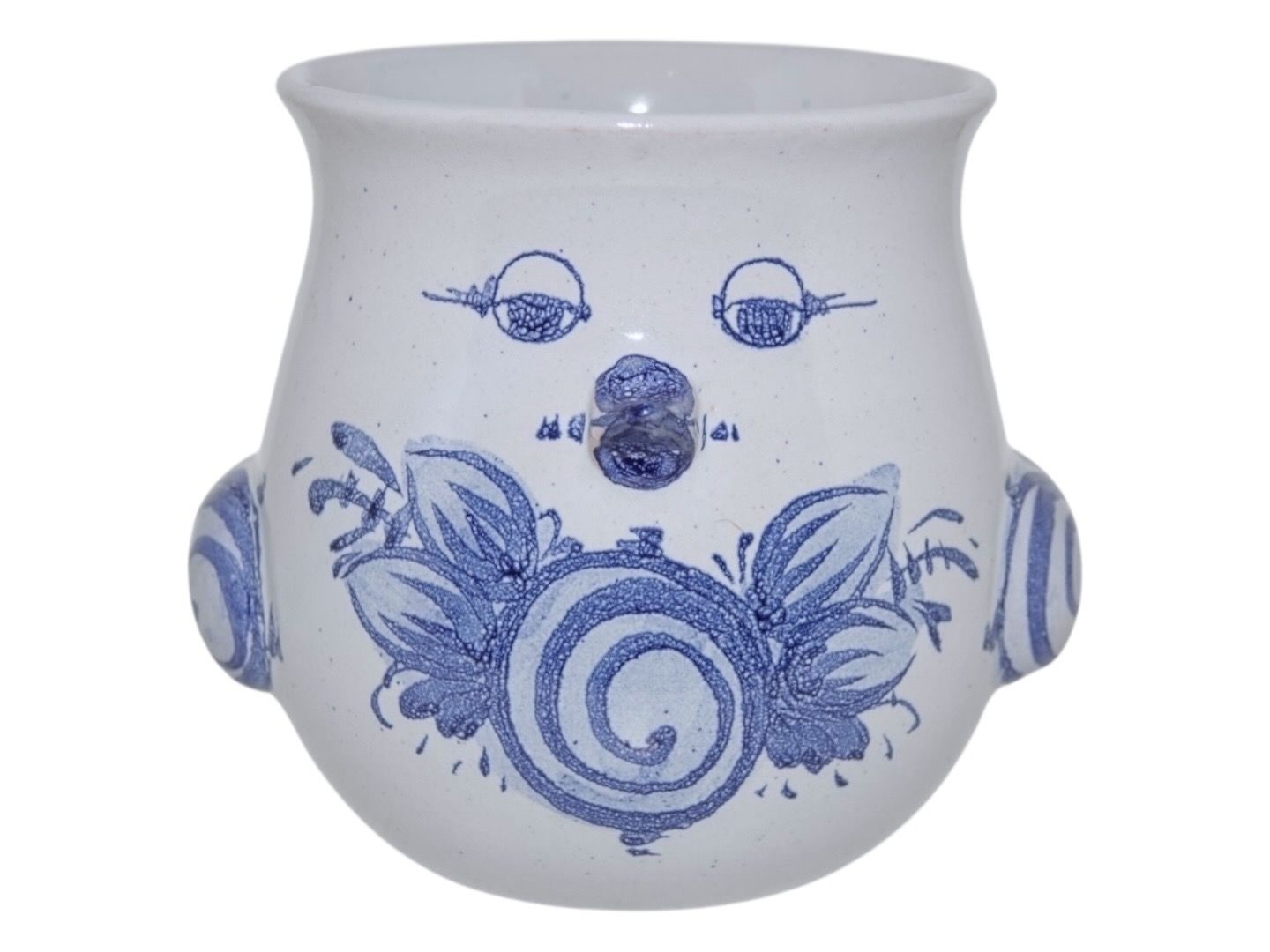 Bjorn Wiinblad art pottery, small blue flower pot shaped as a bird with beak, wings and a tail. Decoration number V66. This is from 1980. Height 10.0 cm., diameter 9.4 cm. Perfect condition.