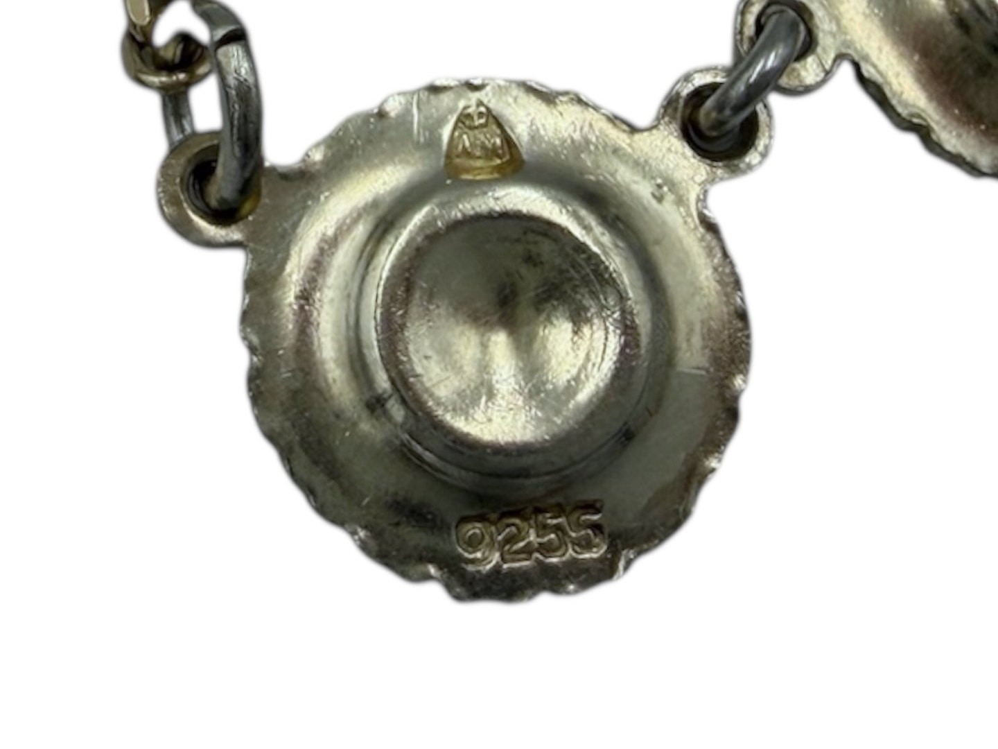 Anton Michelsen sterling silver and enamel, Daisy necklace with 27 small daisies. Hallmarked "AM STERLING DENMARK". This is from around 1960. Length 42.0 cm., each Daisy measures 1.1 cm. Perfect condition.