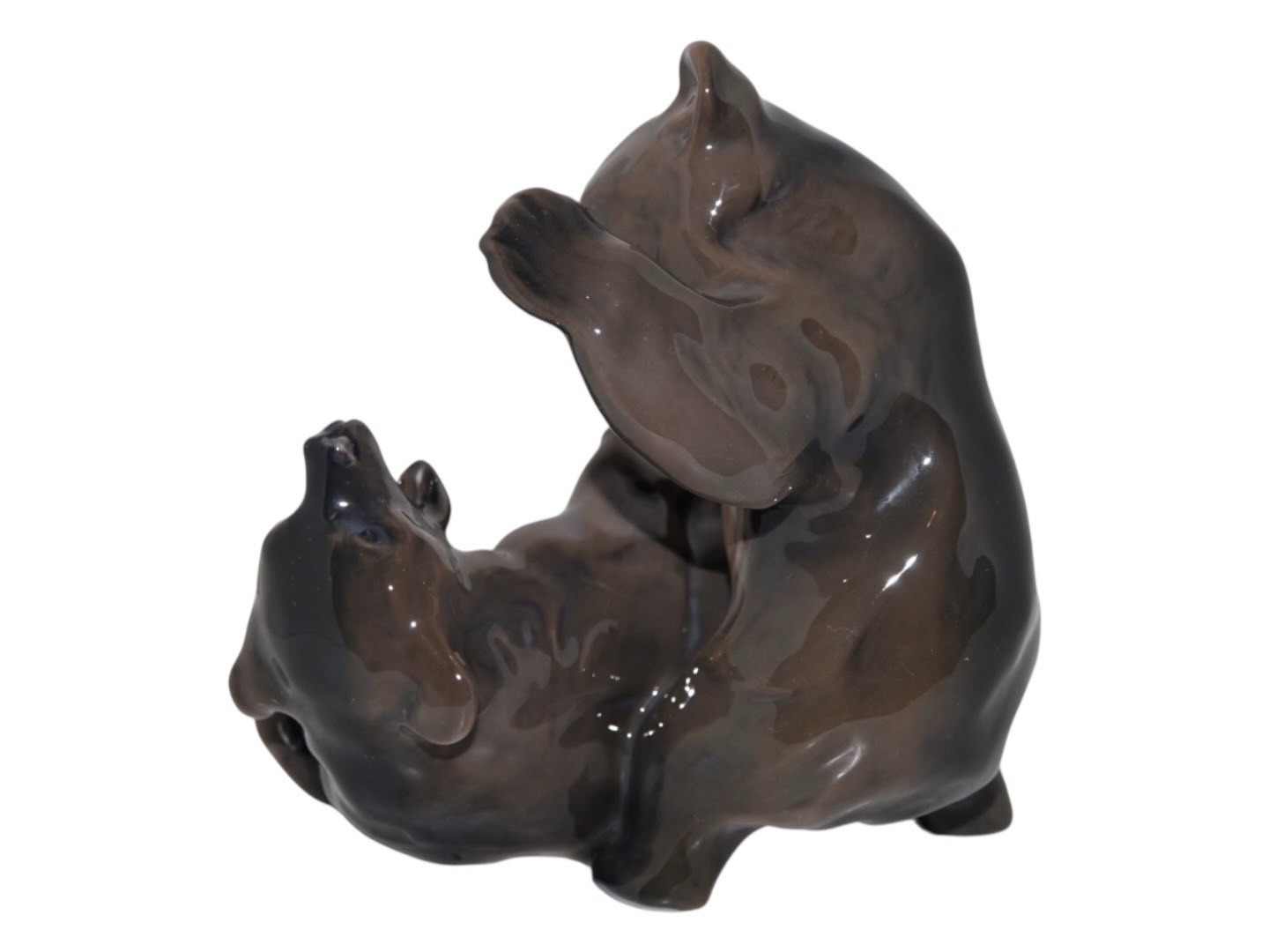 Royal Copenhagen figurine, two brown bears fighting. Rarely seen in this color.