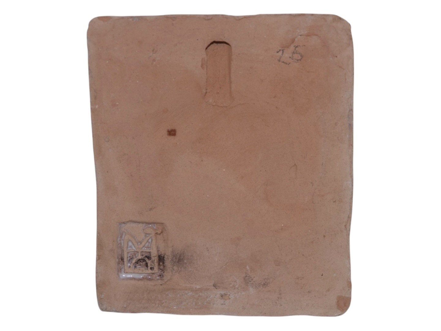 Doreen Middelboe art pottery, small square plaquette with a cat. This is part of a big collection from the private estate of Doreen Middelboe. This hallmarked "DM". Measures 9.0 by 7.6 cm. Excellent condition.
