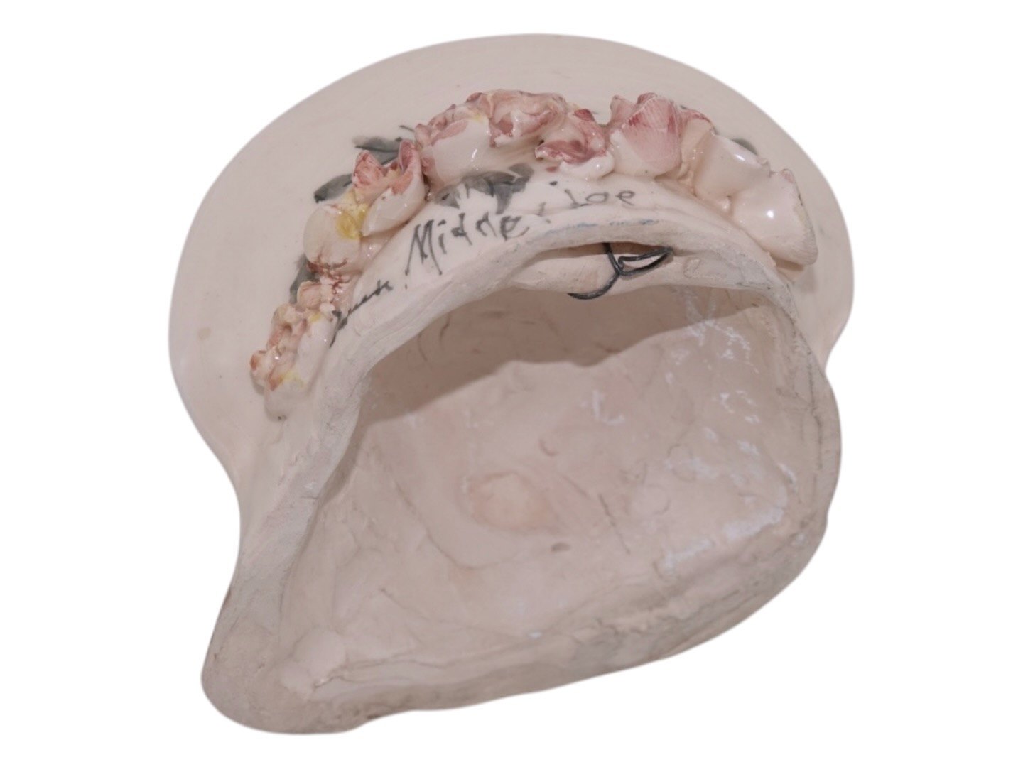 Doreen Middelboe art pottery, wall-hanged lady with flower hat figurine.