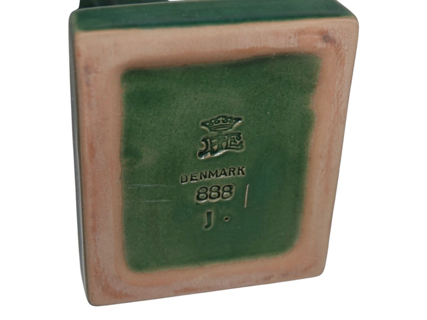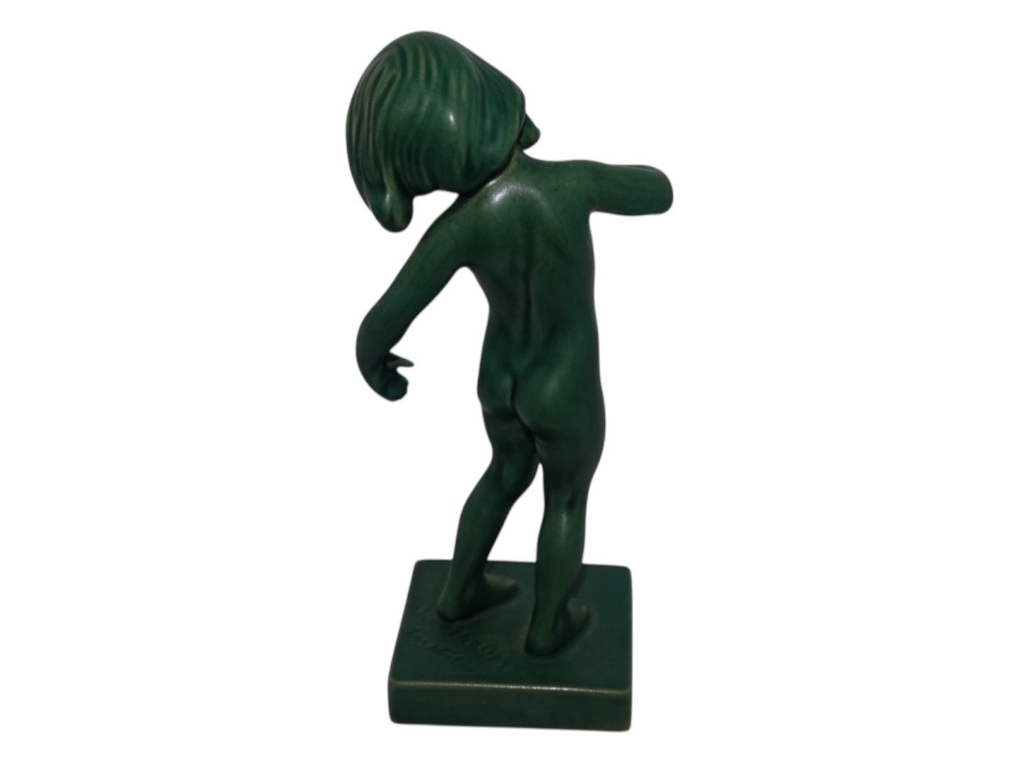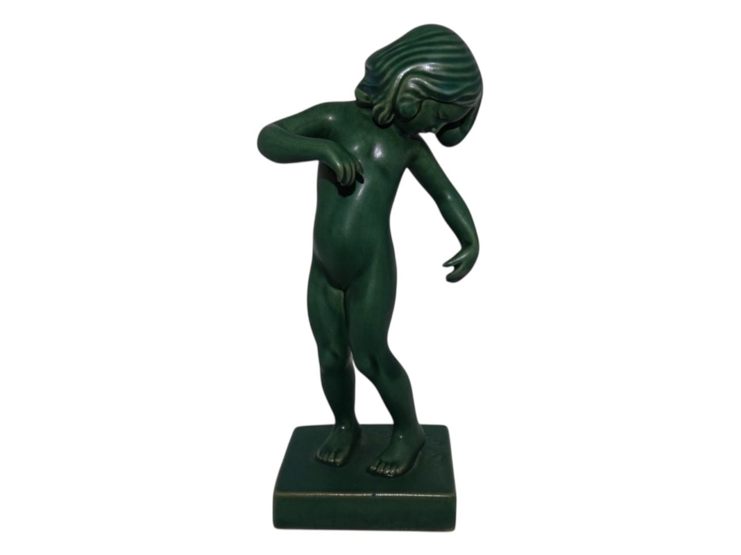 Green Ipsen art pottery figurine, girl called Venus Kalipygos by artist Kai Nielsen. Decoration number 888. Height 22.0 cm. There is a small "chip" on the base, please see the close-up picture, otherwise perfect condition.