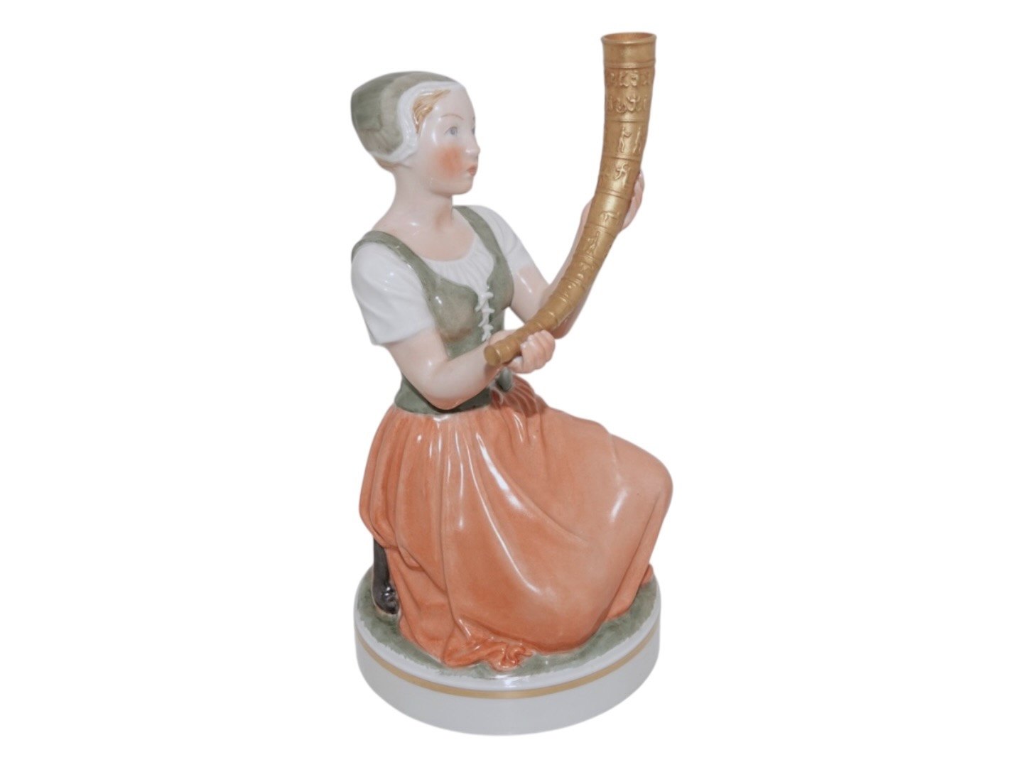 Royal Copenhagen Overglaze figurine, Girl with the Horn of Gold. Decoration number 12242. Factory first. Height 22.0 cm. Perfect condition.