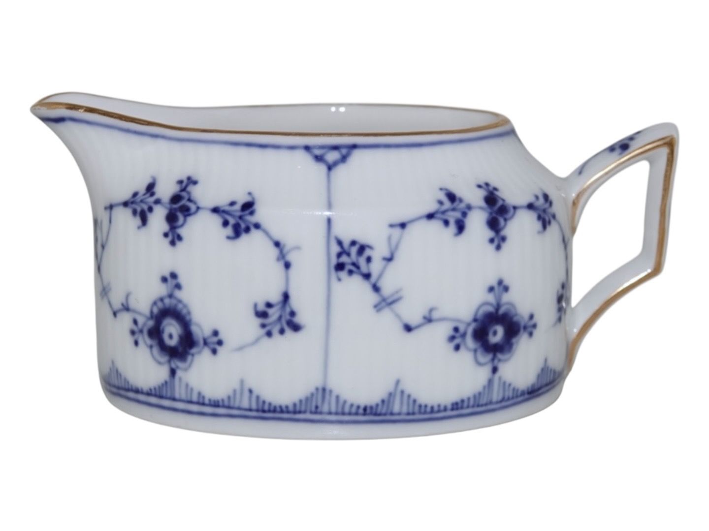 Royal Copenhagen Blue Fluted Plain with gold edge, rare oval creamer.